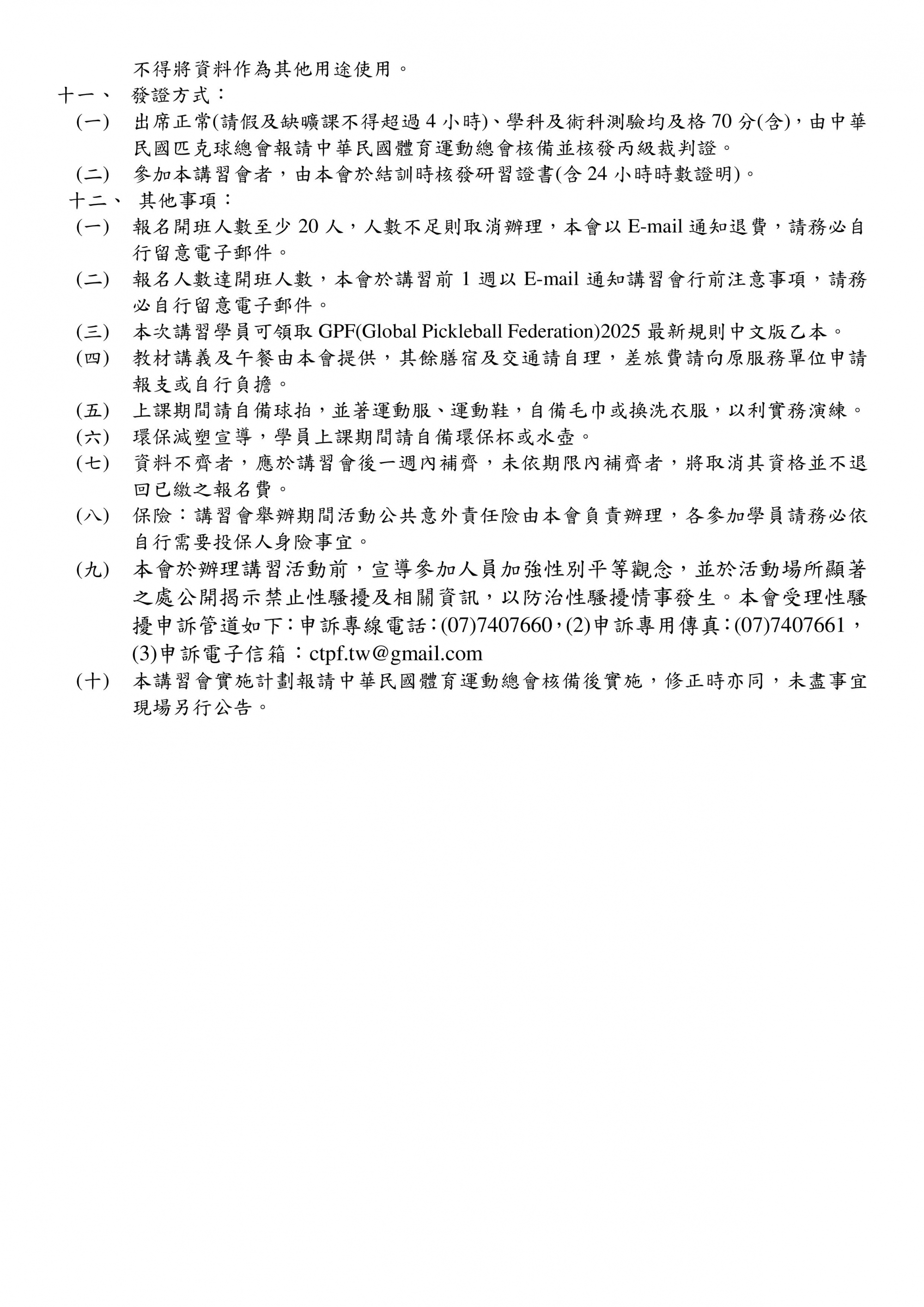 報名洽詢:中華民國匹克球總會南區秘書長 郭忠義教練0921228070