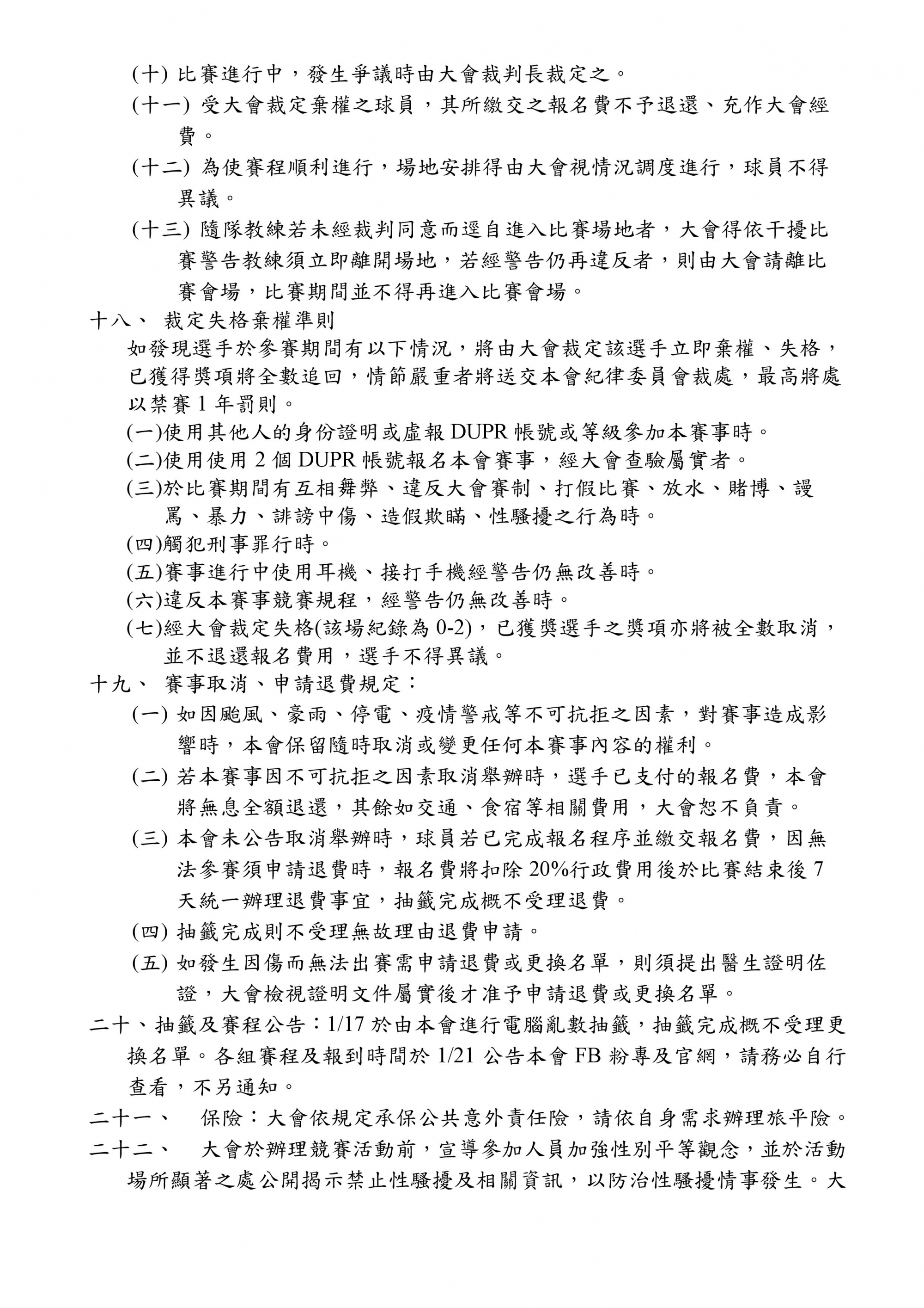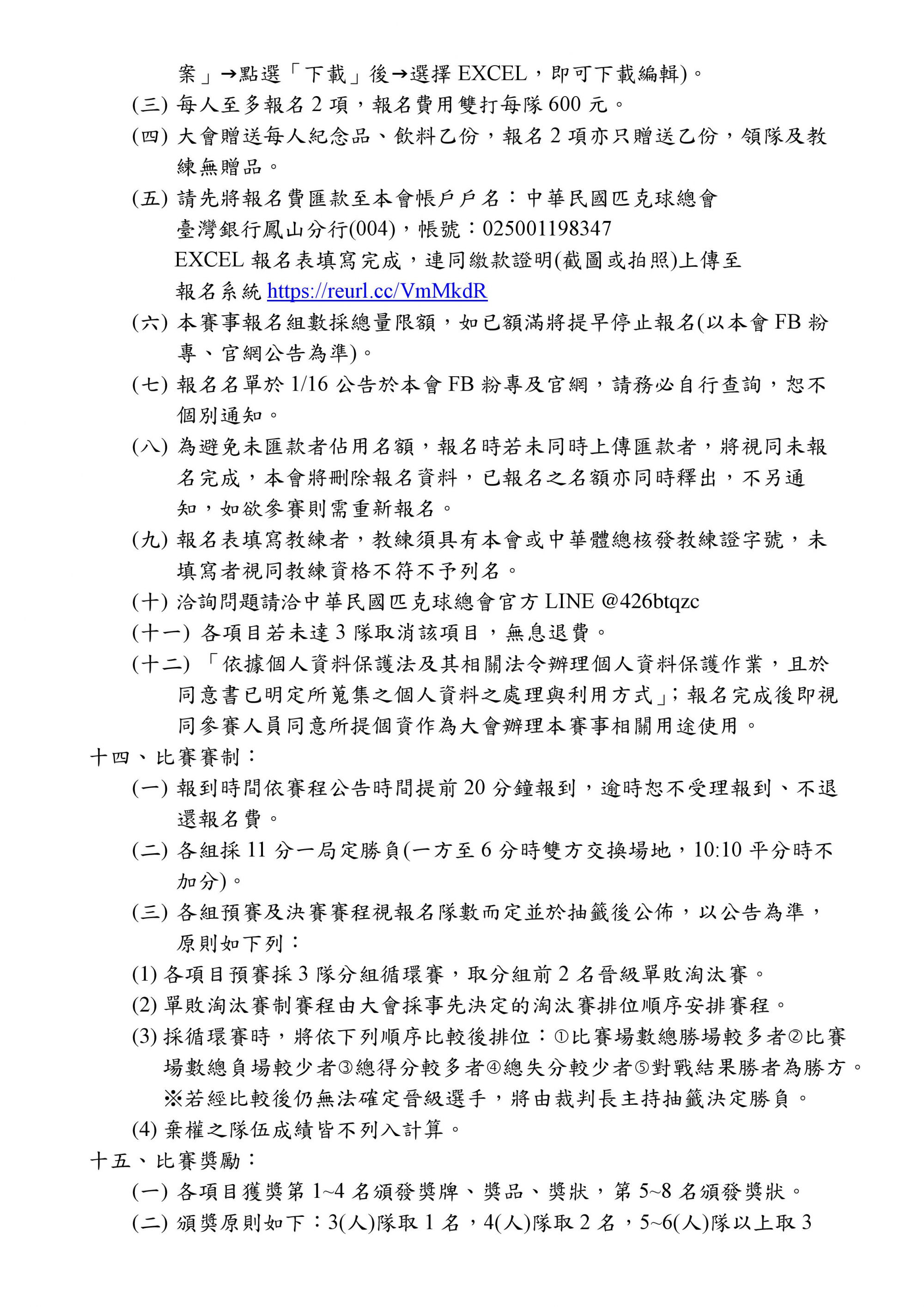 (三)每人至多報名2項,報名費用雙打每隊600元。