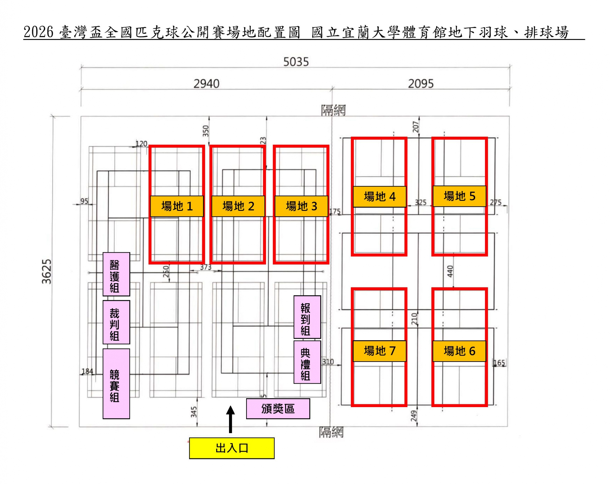 比賽地點:國立宜蘭大學體育館地下室羽網球場(連同排球場)