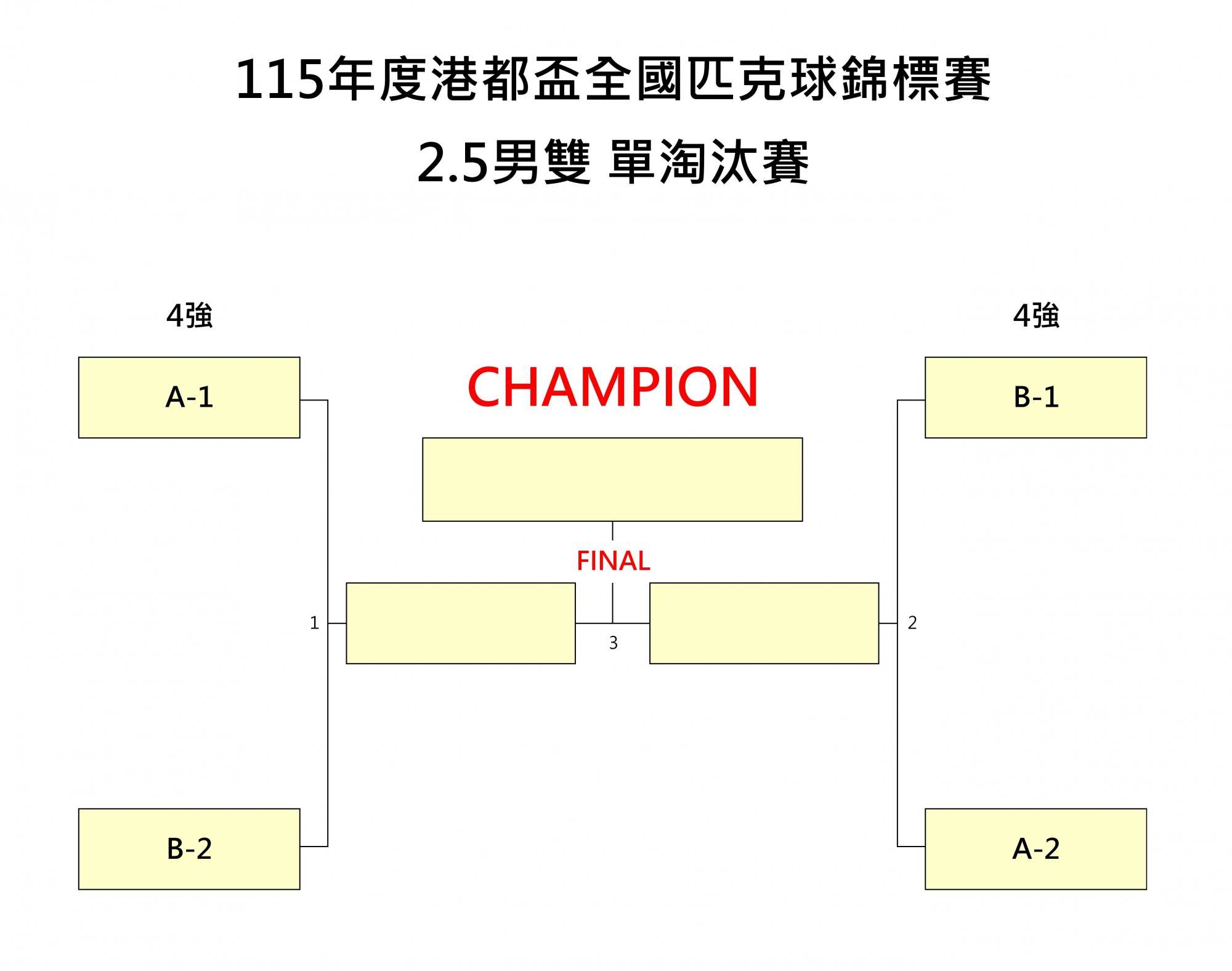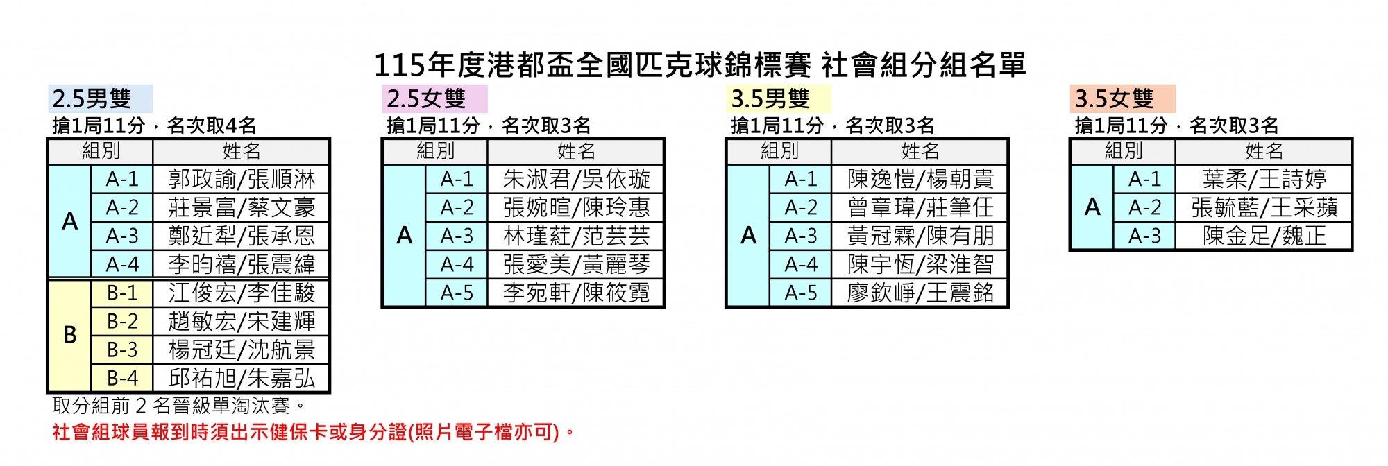115年度港都盃全國匹克球錦標賽分組名單及場次表公告