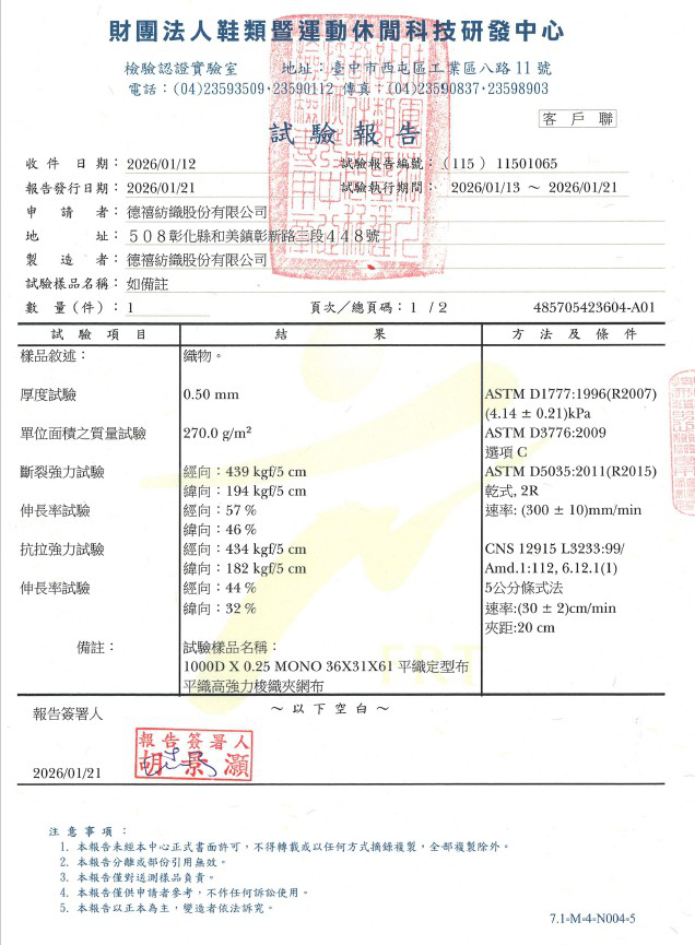 1000D 0.25 36 31 61 平紋定型布