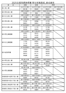 | [國內賽事] 2025全國飛鏢錦標賽 學生.教職員組 分組名單公告 | 2025-11-05 | |