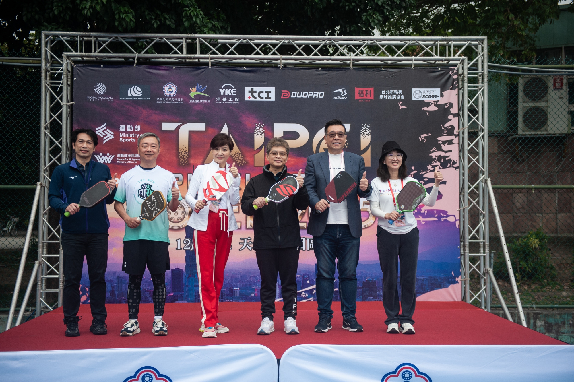 感謝運動部全民運動署 房瑞文署長、臺北市議會 葉林傳副議長、臺北市政府體育局 湯皓宇副局長、洋基工程 劉士源董事長、本會周曉琴理事長、方芳芳副理事長、洪國峻副理事長、陳煒翔副理事長、陳維良副理事長出席開幕儀式