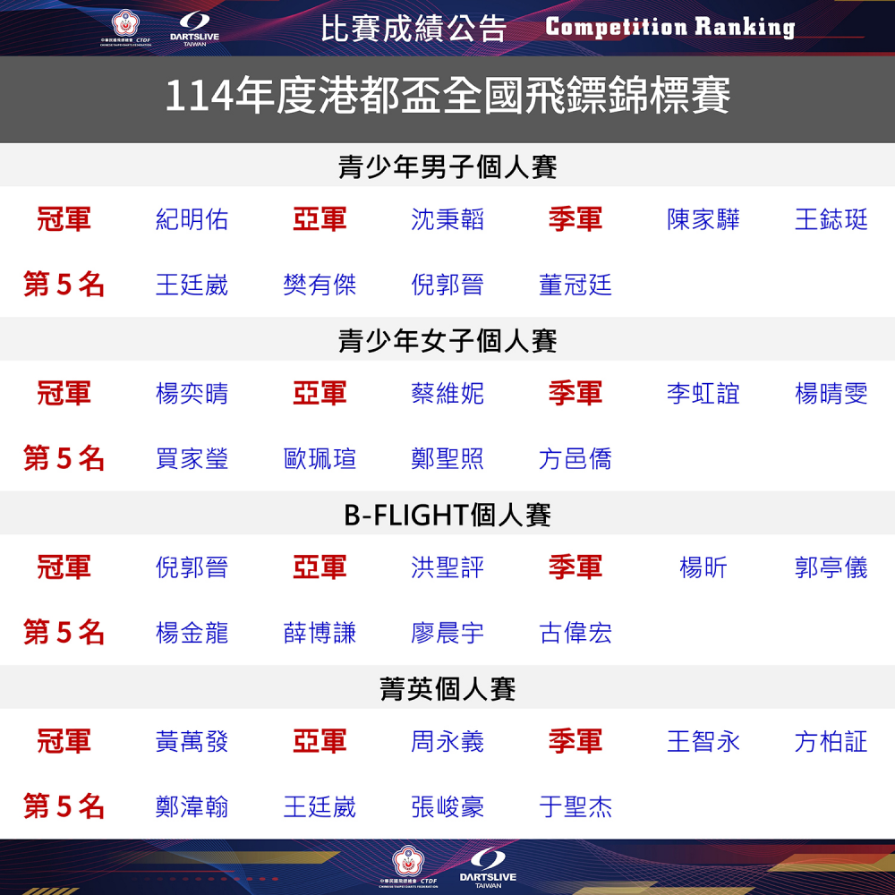 114年度港都盃全國飛鏢錦標賽