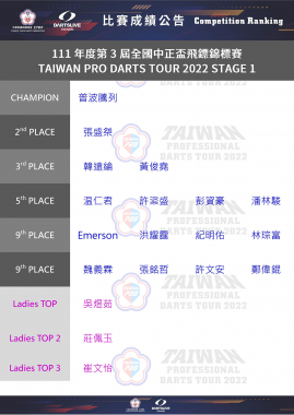111年度全國中正盃飛鏢錦標賽 PRO STAGE1