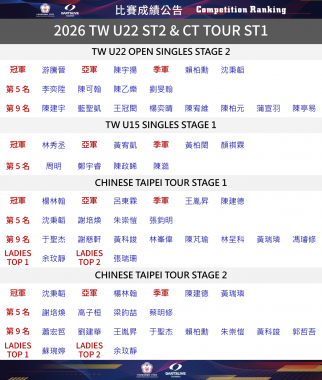 | [國內賽事] 2026 TW U22 TOUR Stage2 & CT TOUR Stage 1-2 開始報名嘍 | 2025-12-16 | |