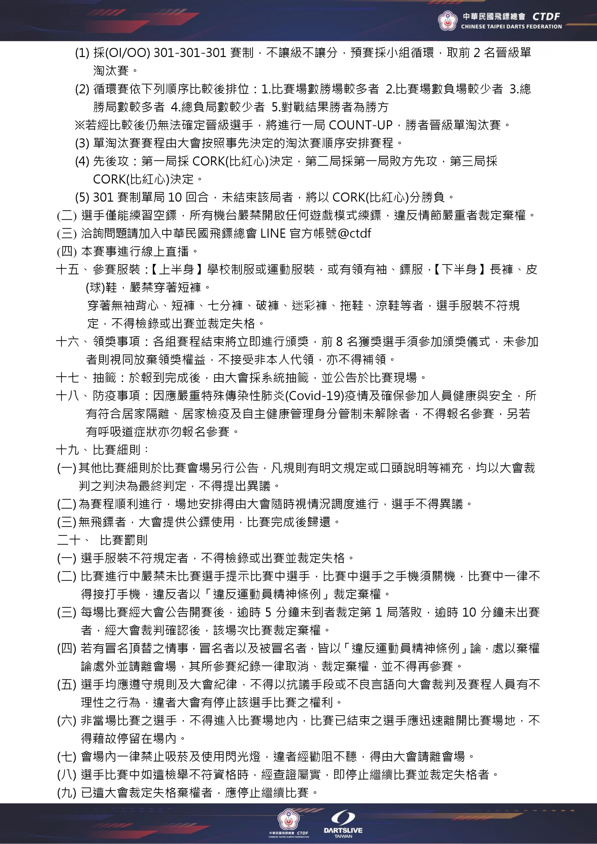 洽詢問題請加入中華民國飛鏢總會LINE官方帳號@ctdf
