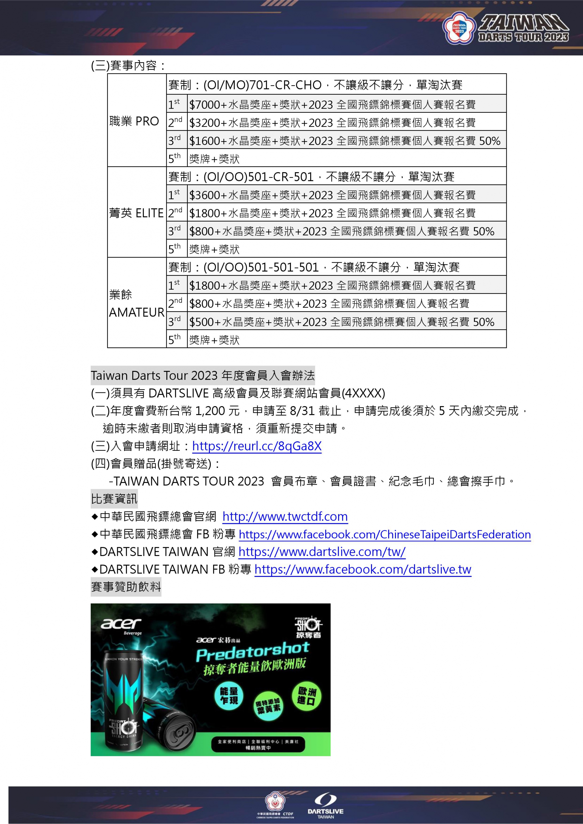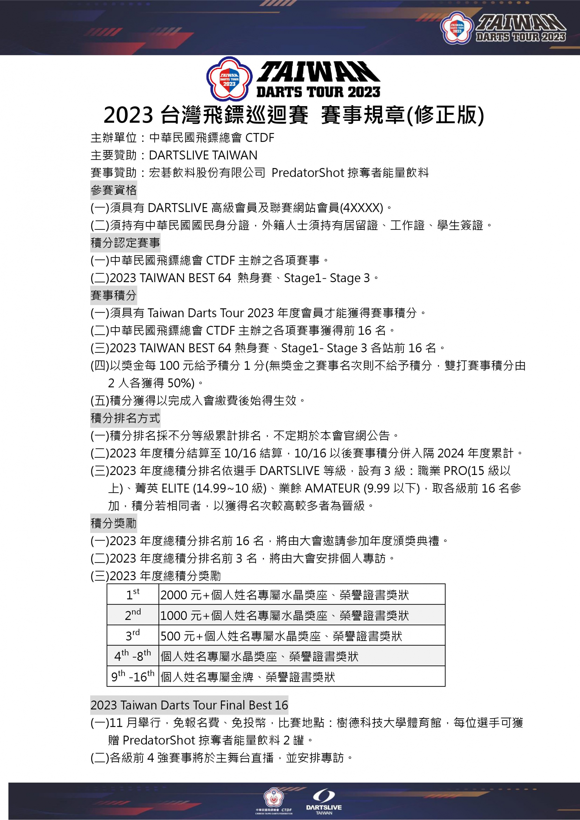 2023 Taiwan Darts Tour 規章修正版公告