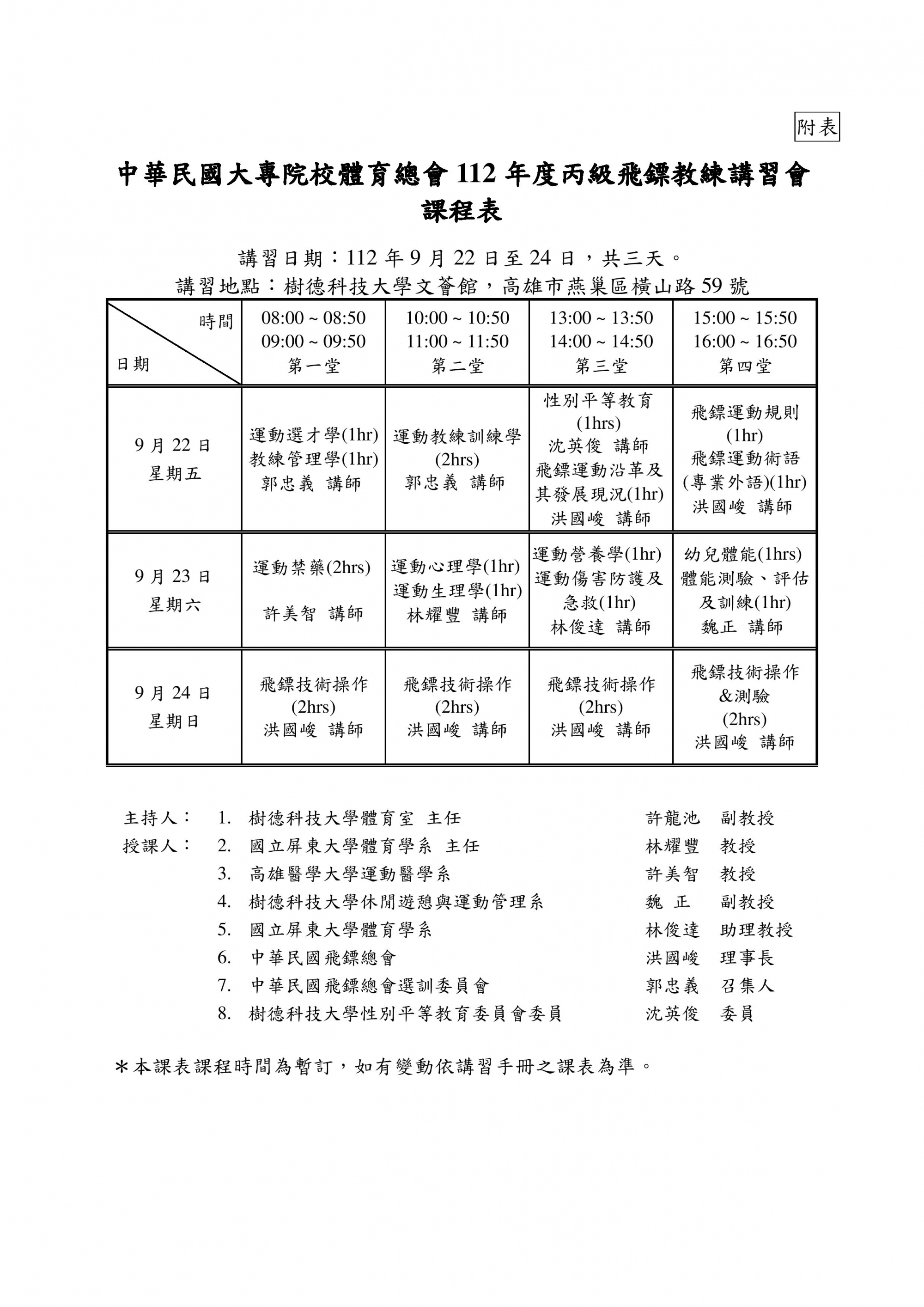 中華民國大專院校體育總會112年5月11日大專體總行字第1120000704號函核備辦理