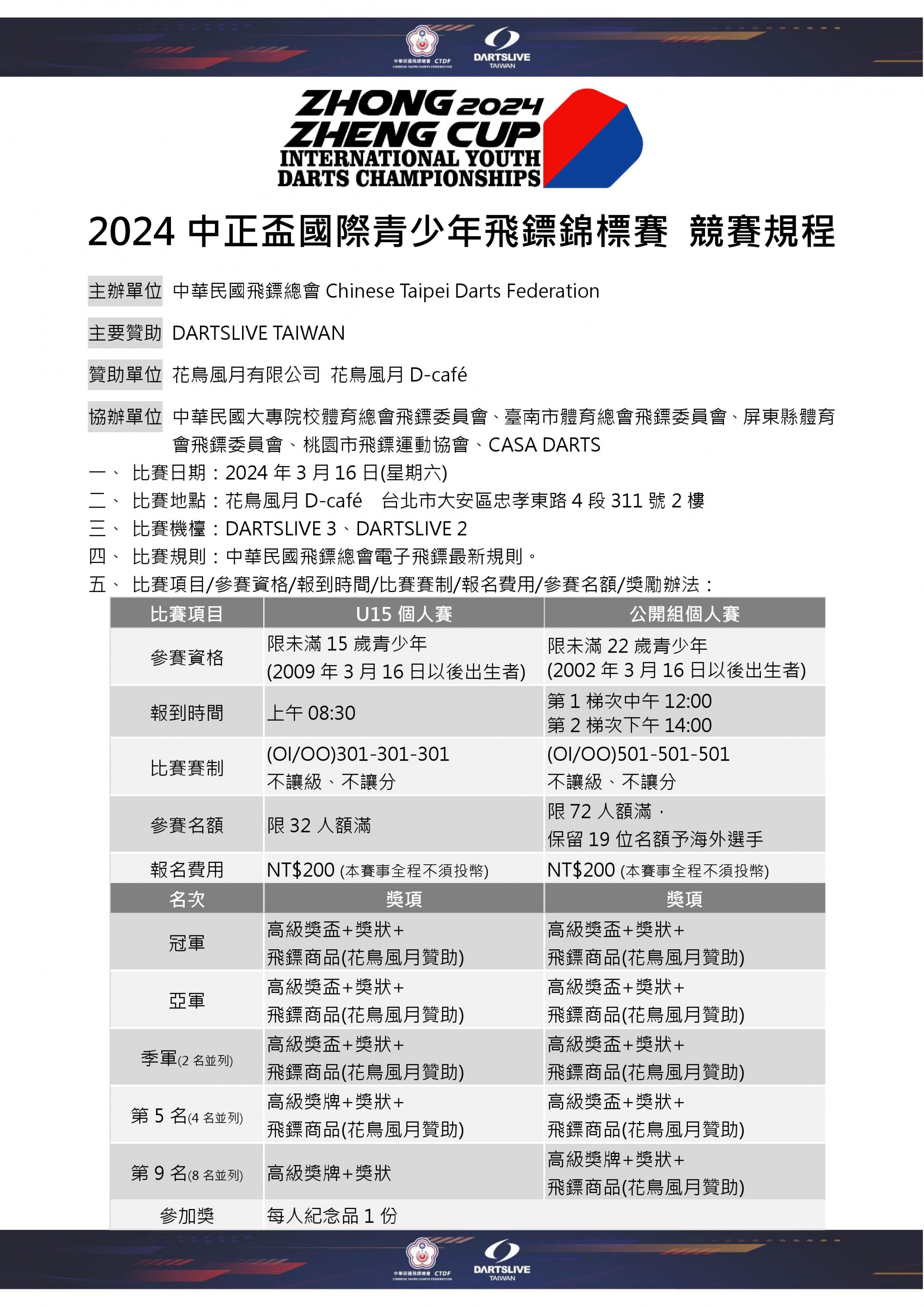 報名費用:每項NT$200(本賽事全程不須投幣),參加獎:每人紀念品1份