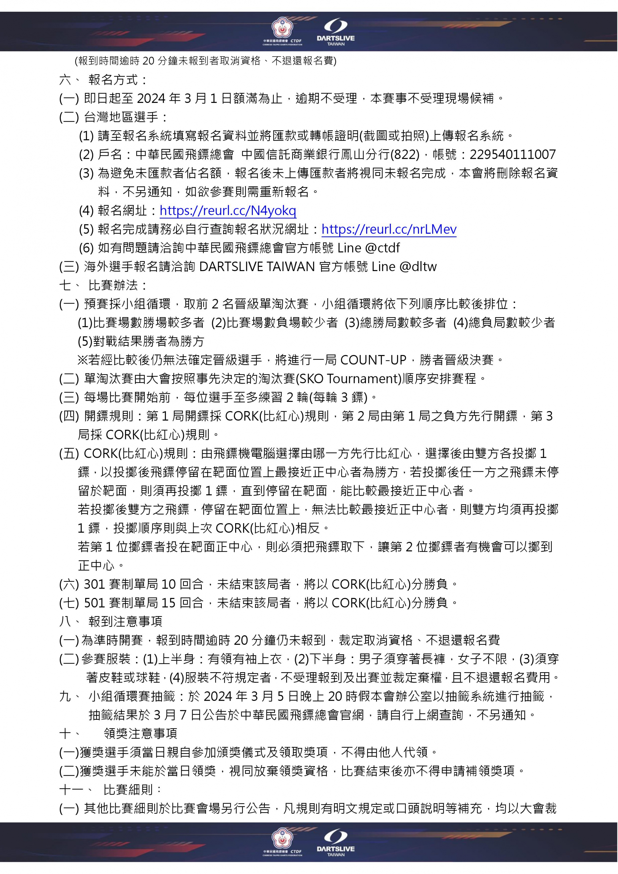 (三)海外選手報名請洽詢DARTSLIVE TAIWAN官方帳號Line @dltw