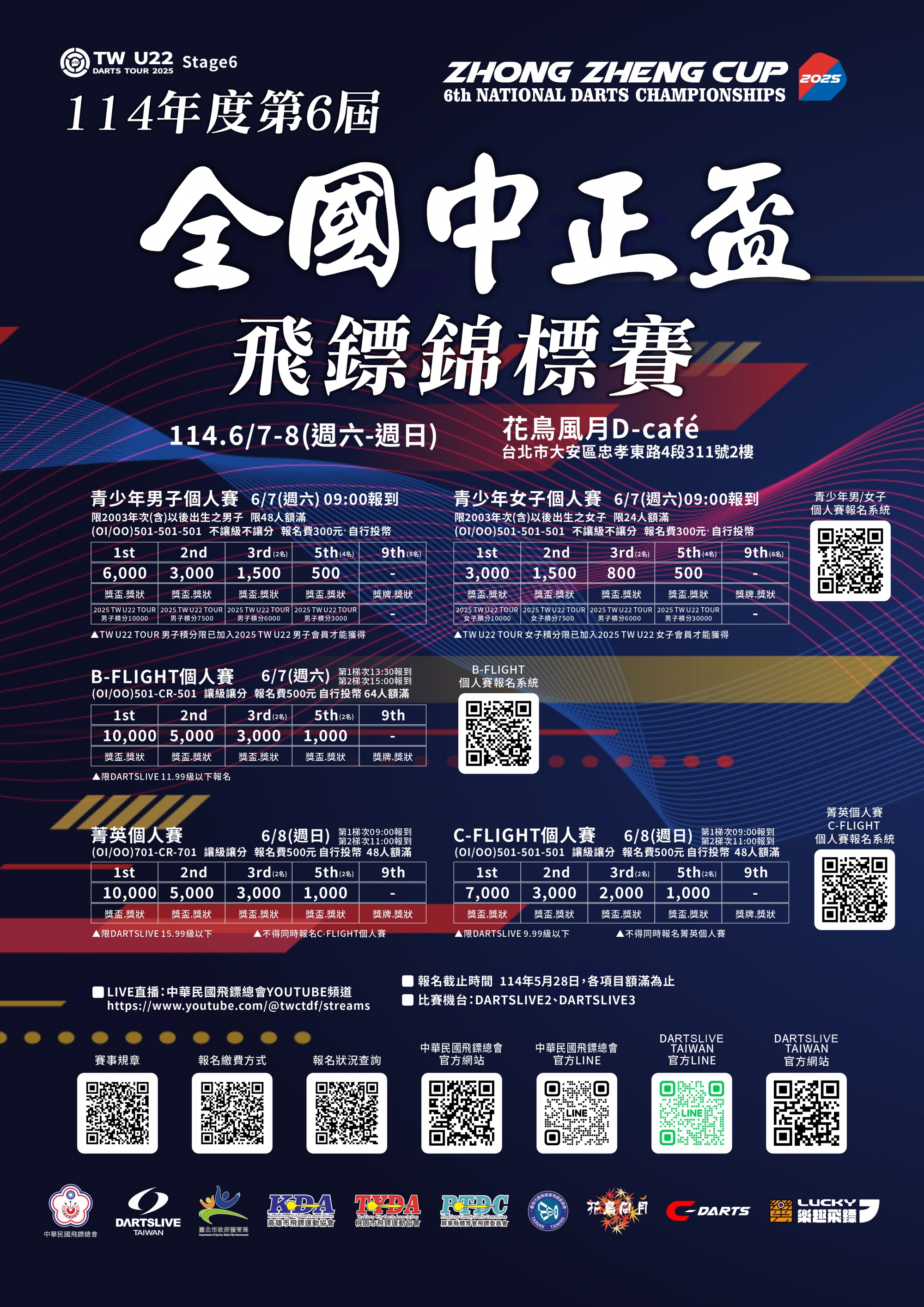 114年第6屆全國中正盃飛鏢錦標賽 開始受理報名開始受理報名