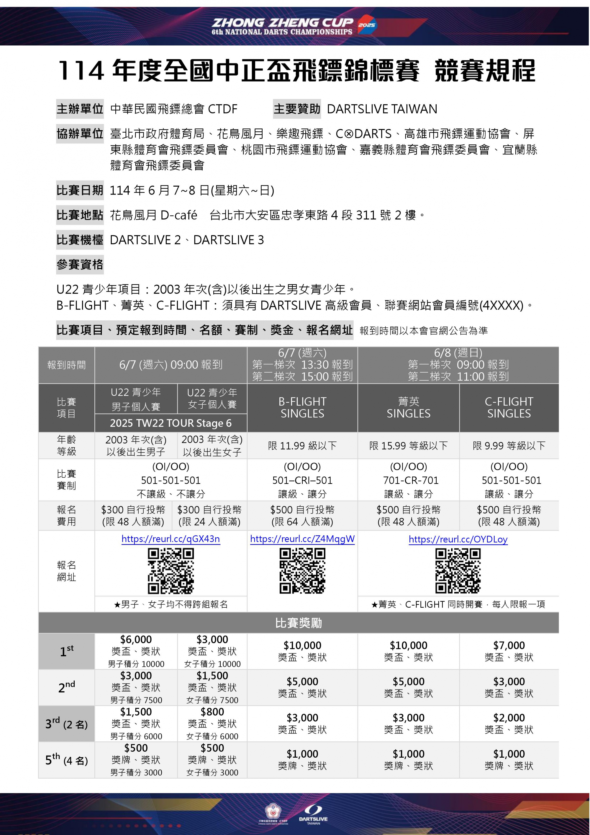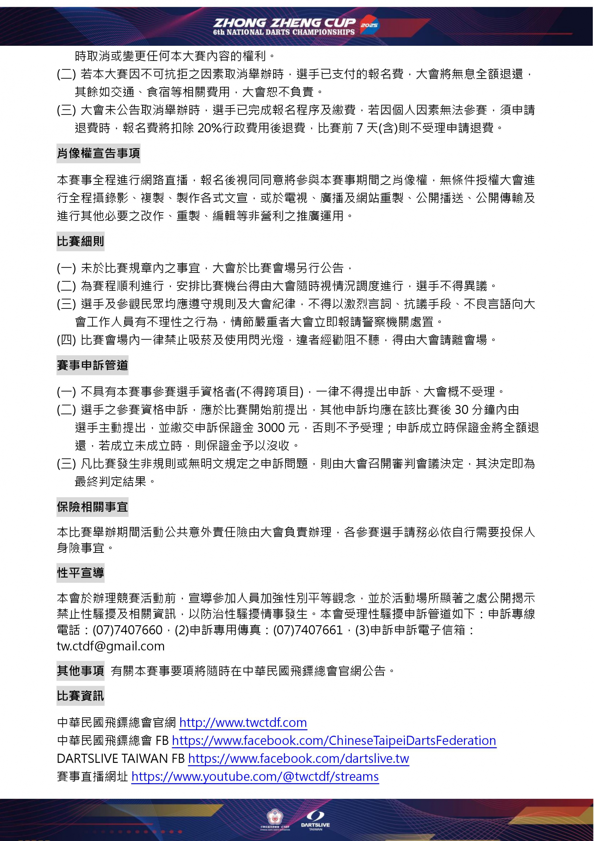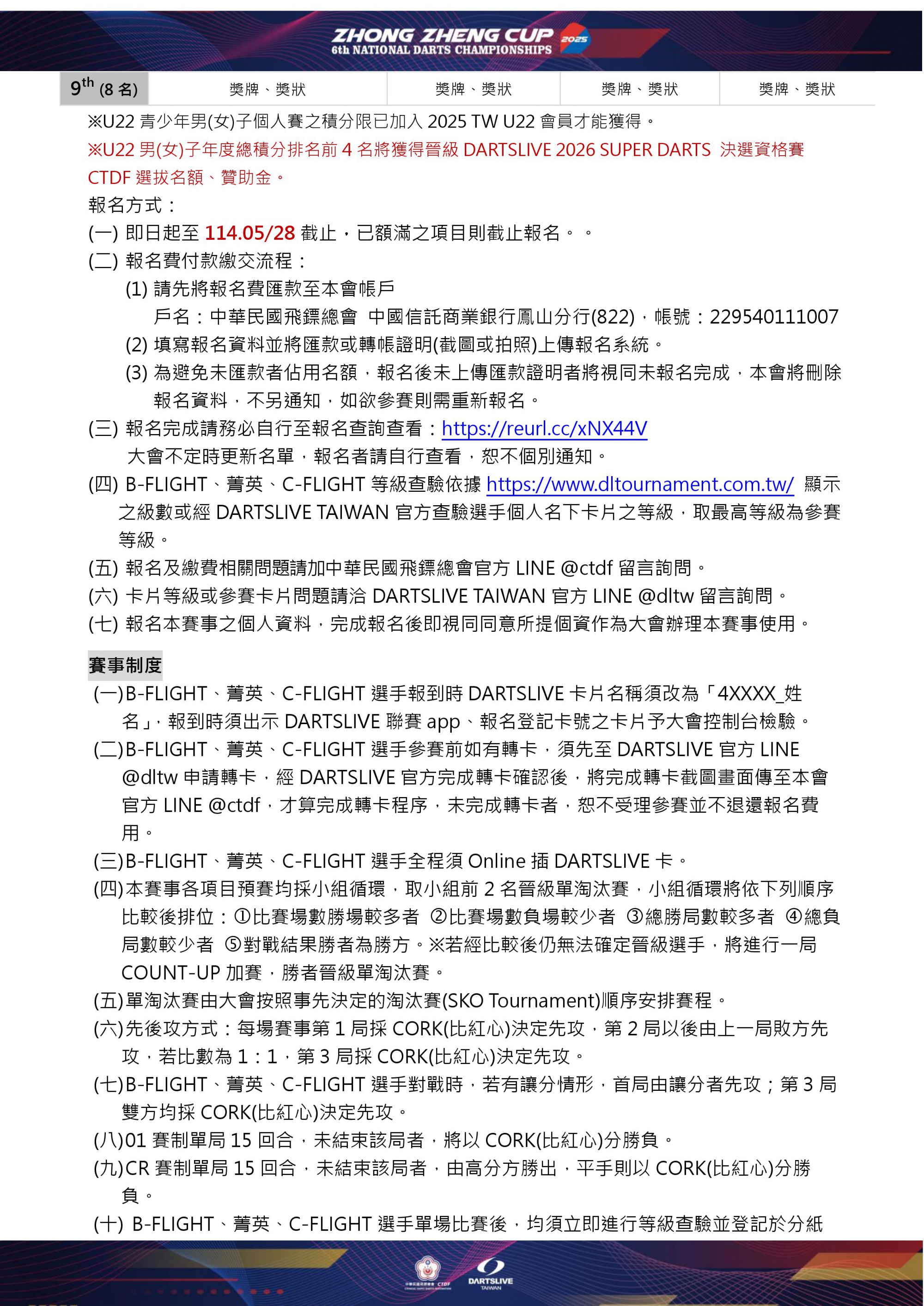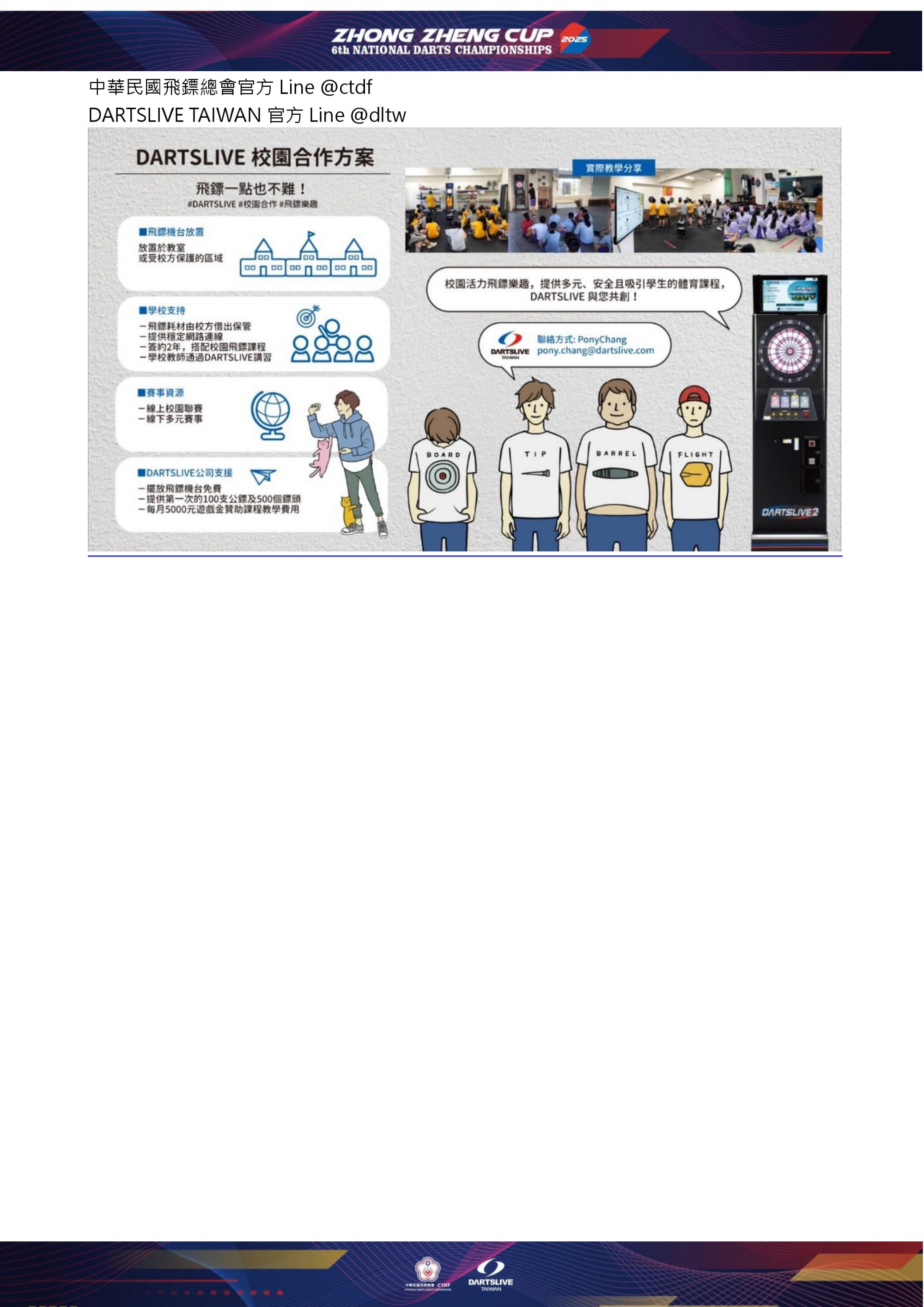 報名或比賽相關問題請加中華民國飛鏢總會官方LINE @ctdf留言詢問