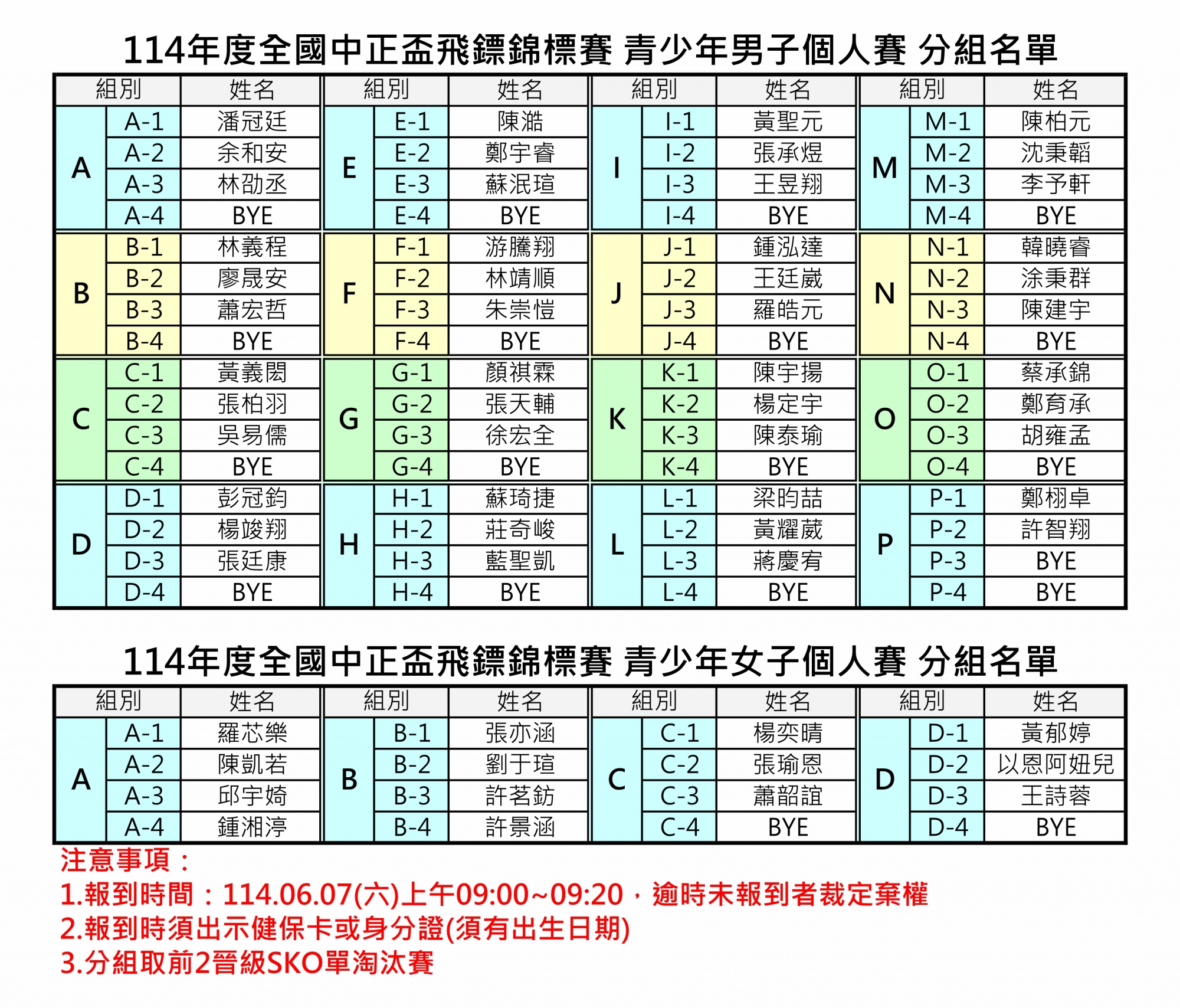 B-FLIGHT個人賽、C-FLIGHT個人賽、菁英個人賽於報到後公告分組名單。