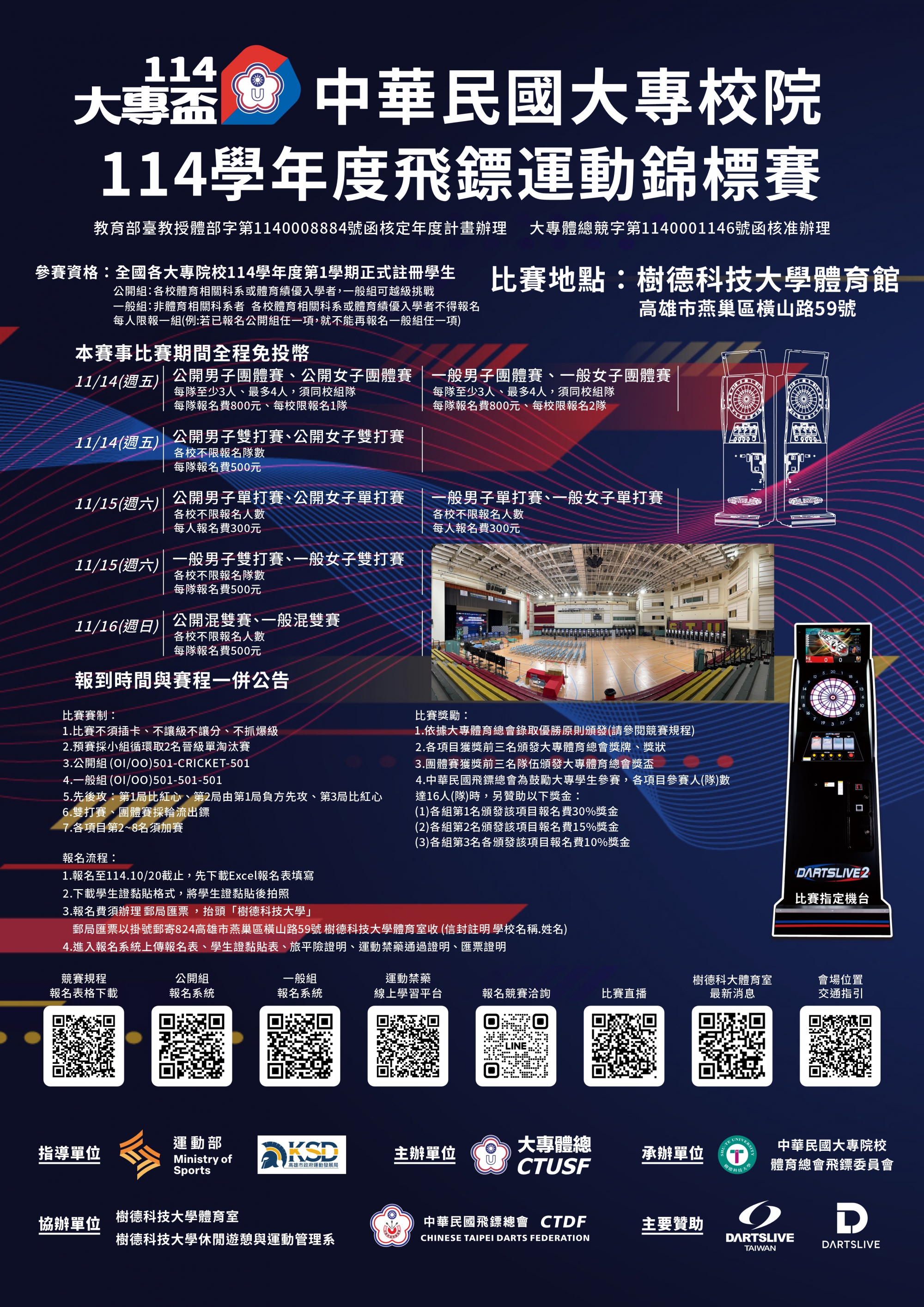 中華民國大專校院114學年度飛鏢運動錦標賽競賽資訊公告
