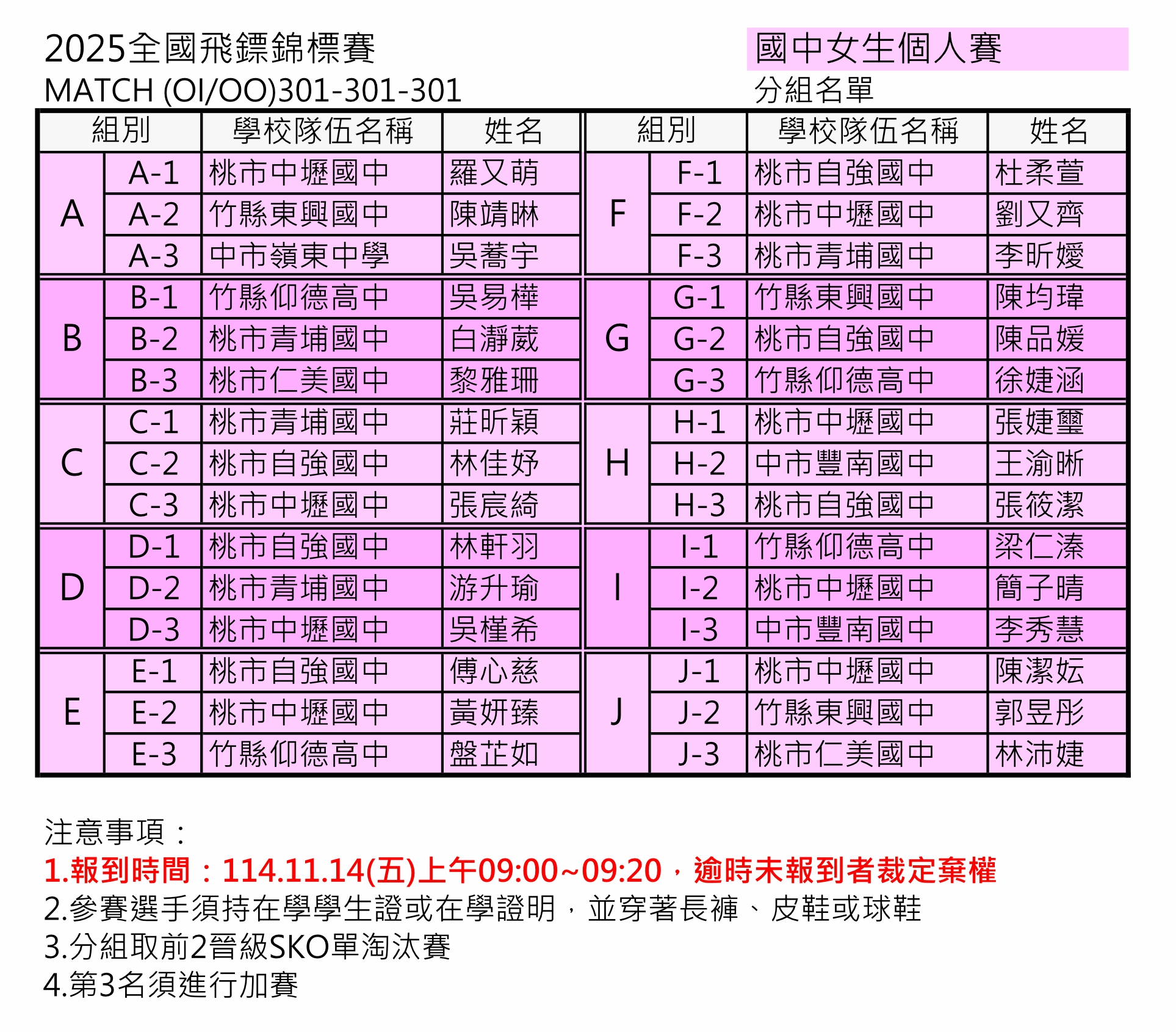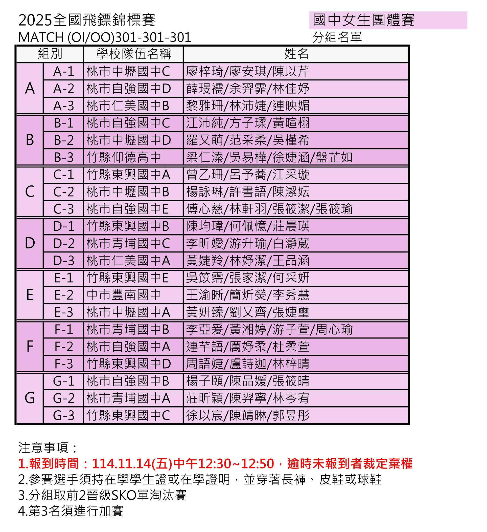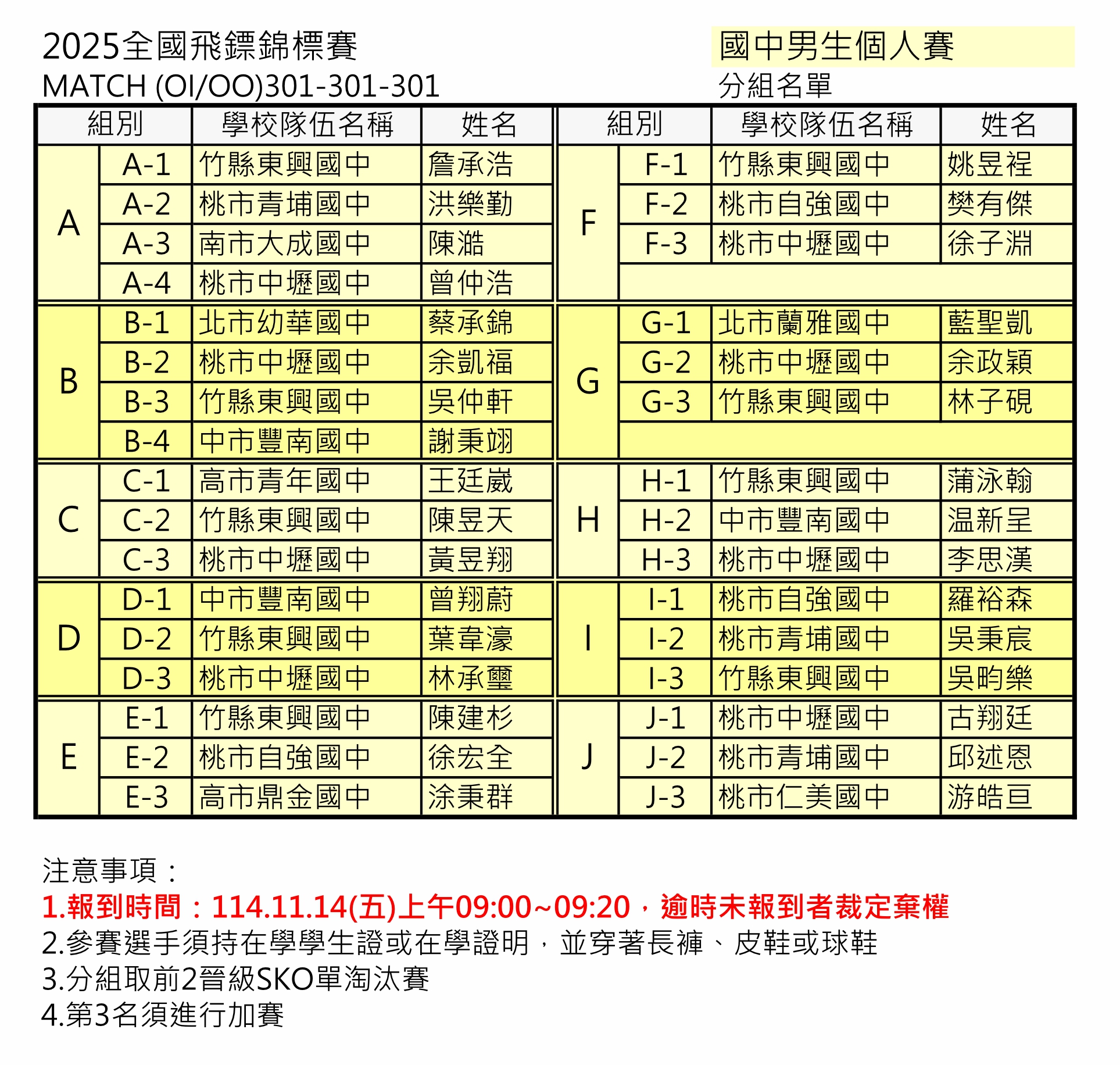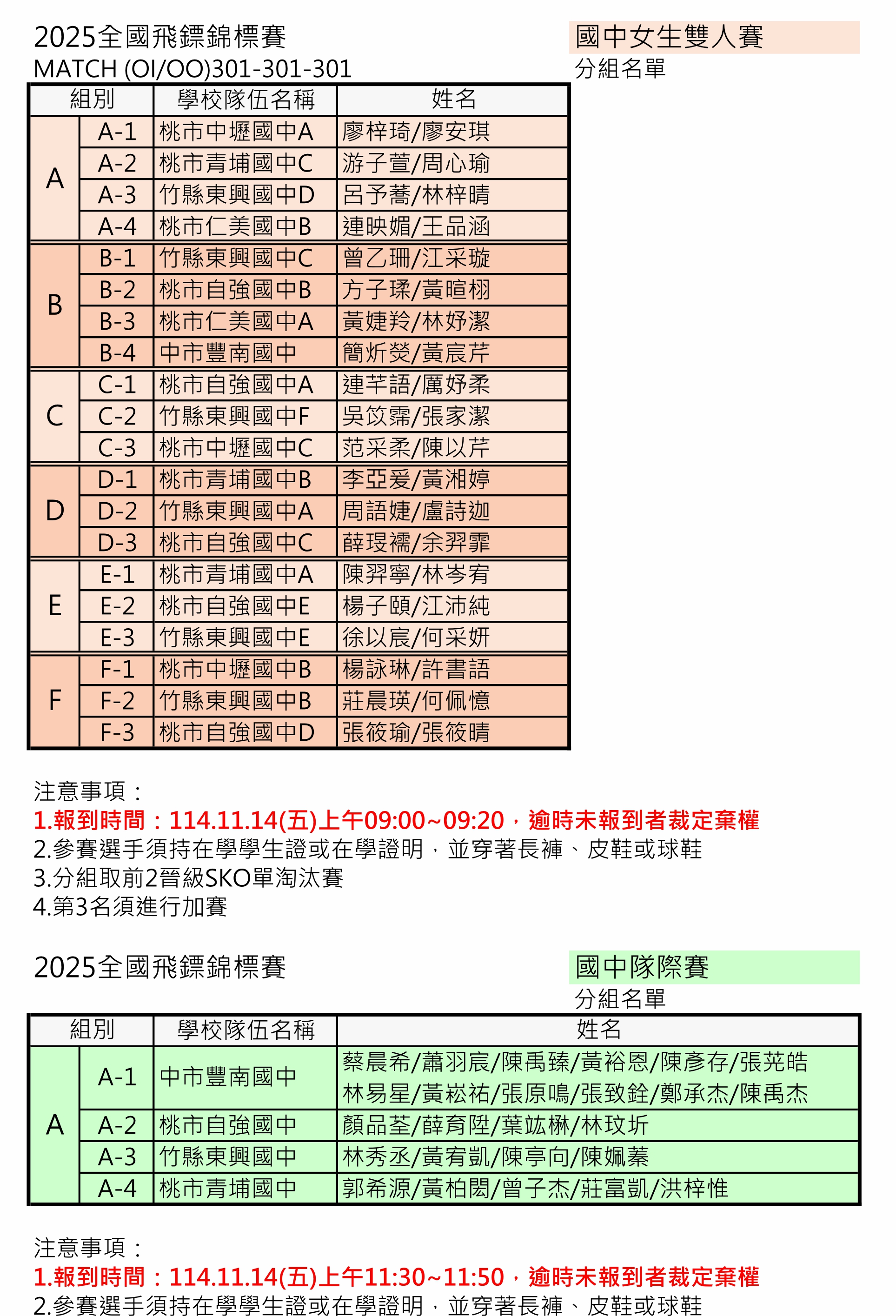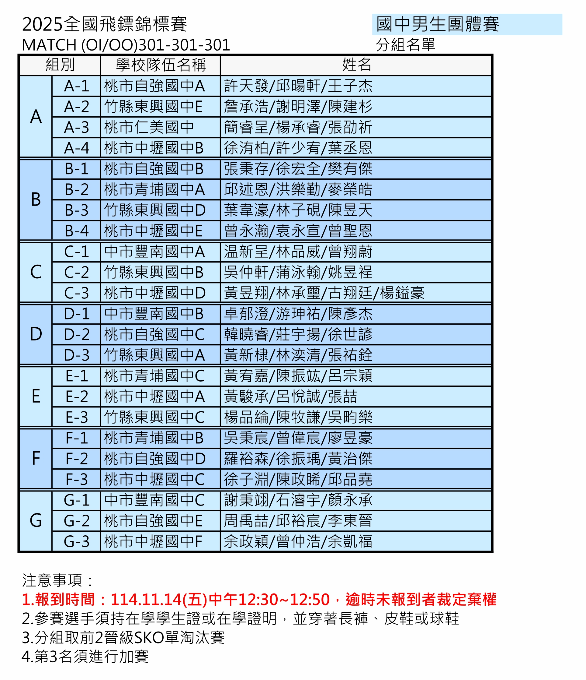 學生組、教職員組 分組名單賽程及報到時間公告