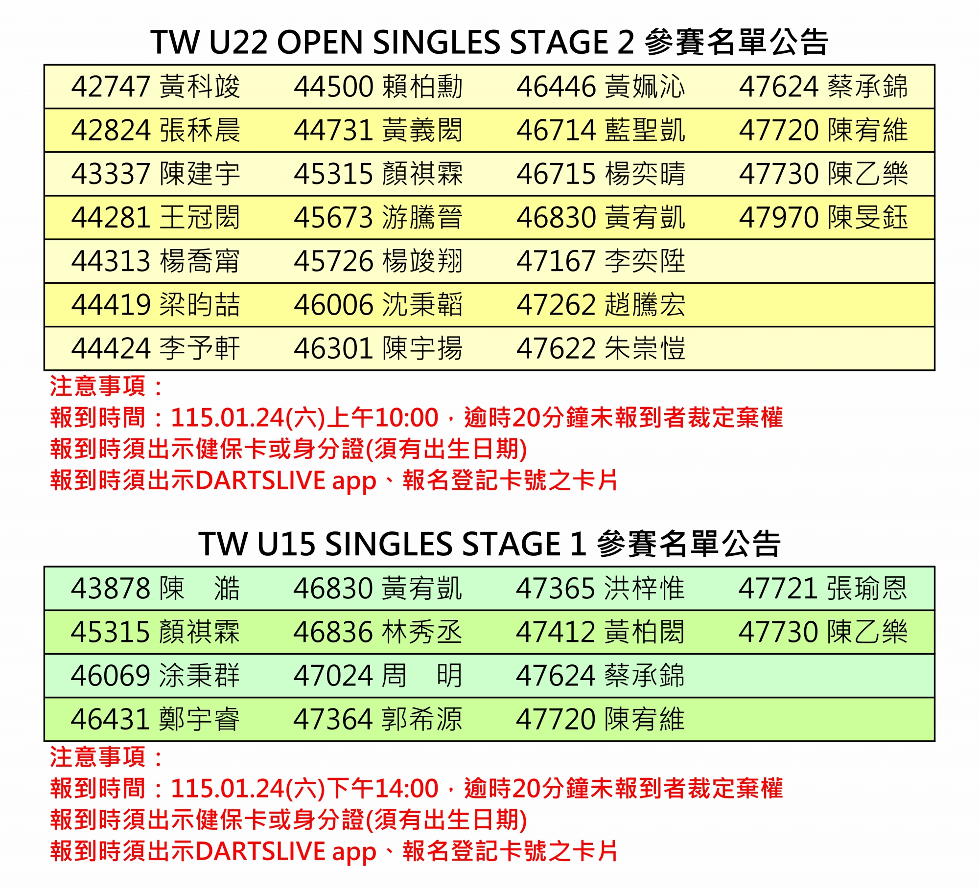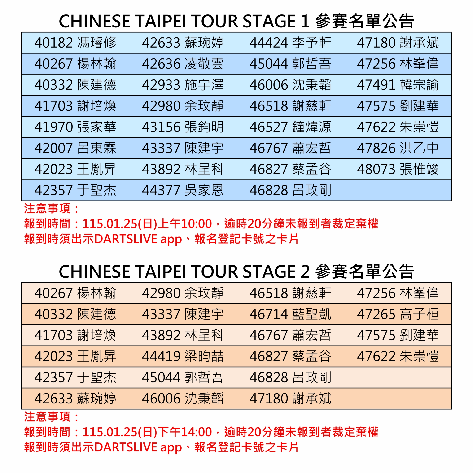 2026 TW U22 TOUR Stage2 & CT TOUR Stage 1-2 參賽名單及報到時間公告