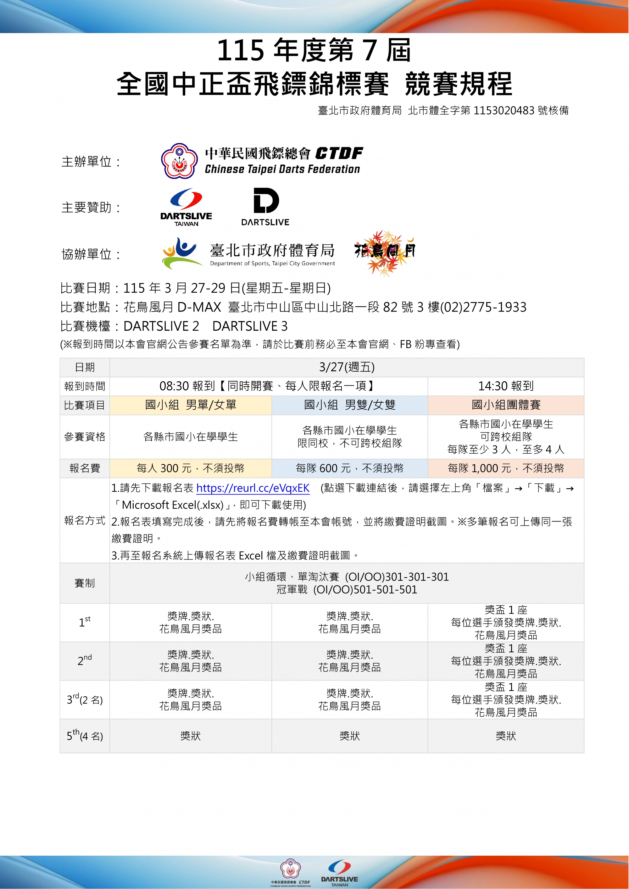 比賽日期:115年3月27-29日(星期五-星期日)