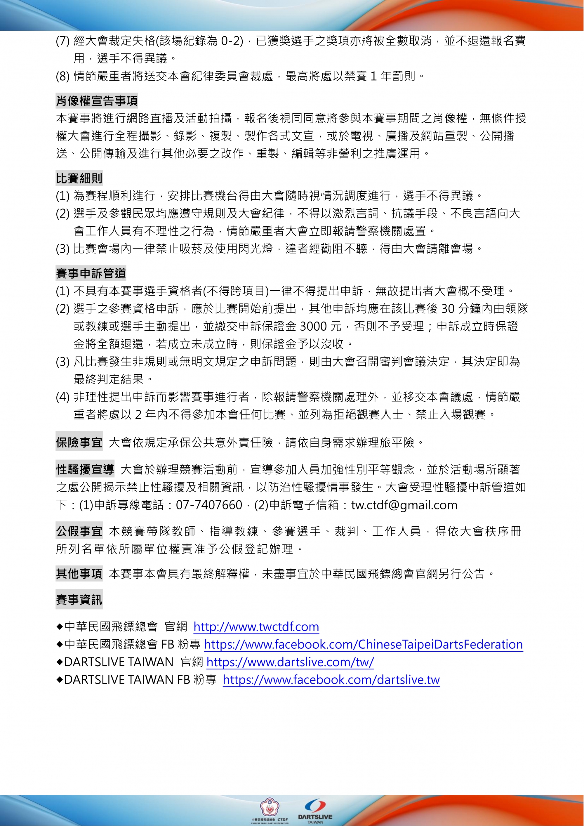 (三)報名問題請洽詢中華民國飛鏢總會官方Line @ctdf