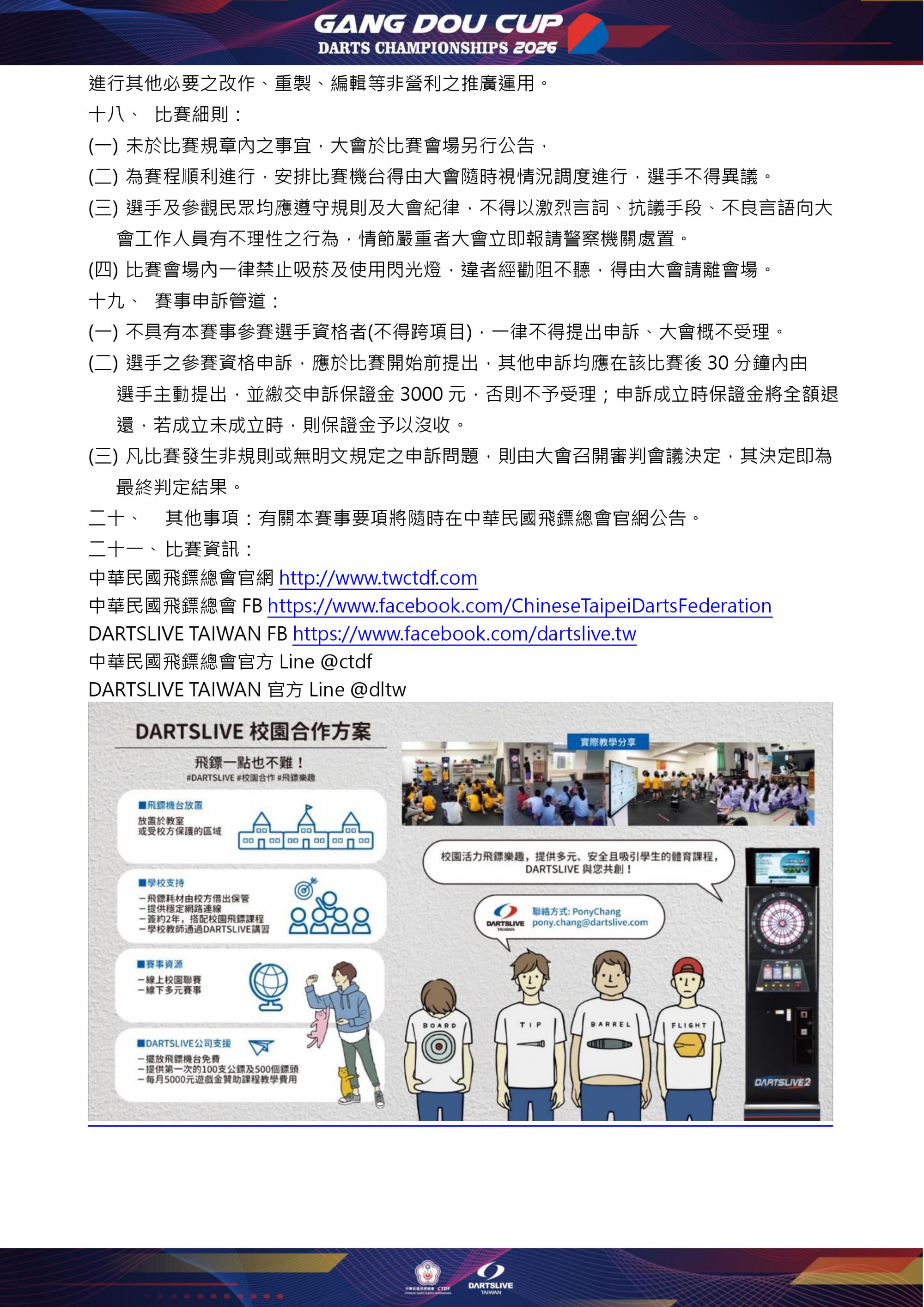 報名問題請加中華民國飛鏢總會官方LINE ID @ctdf留言詢問