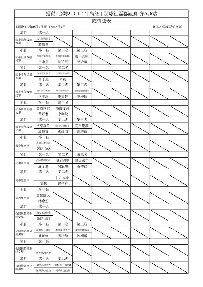 運動i台灣2.0-112年高雄市羽球社區聯誼賽-第5-6站_總成績表