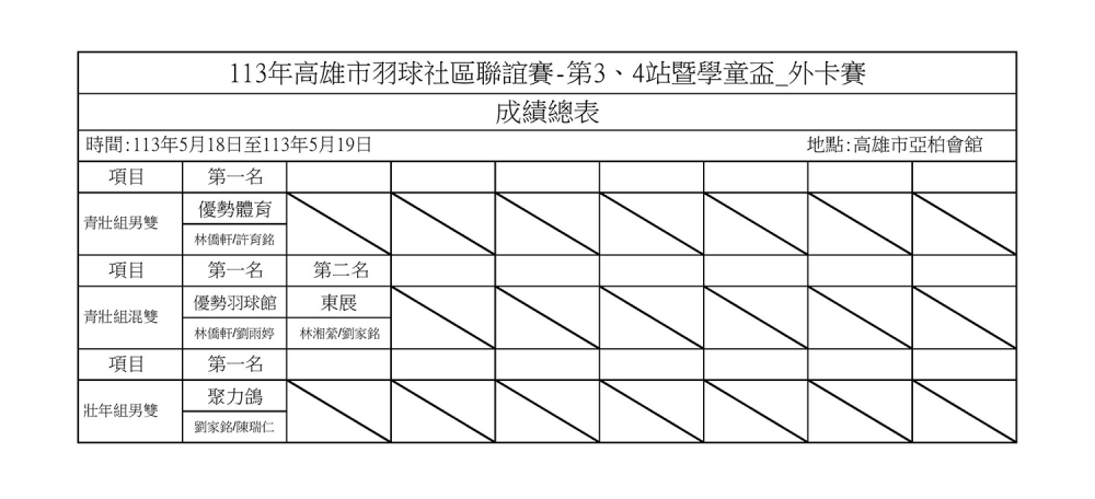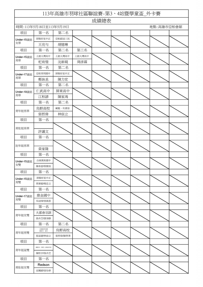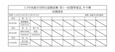 113年高雄市羽球社區聯誼賽第3、4場 比賽成績