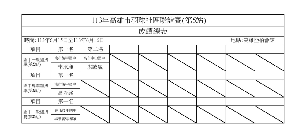 113年高雄市羽球社區聯誼賽第5場 比賽成績