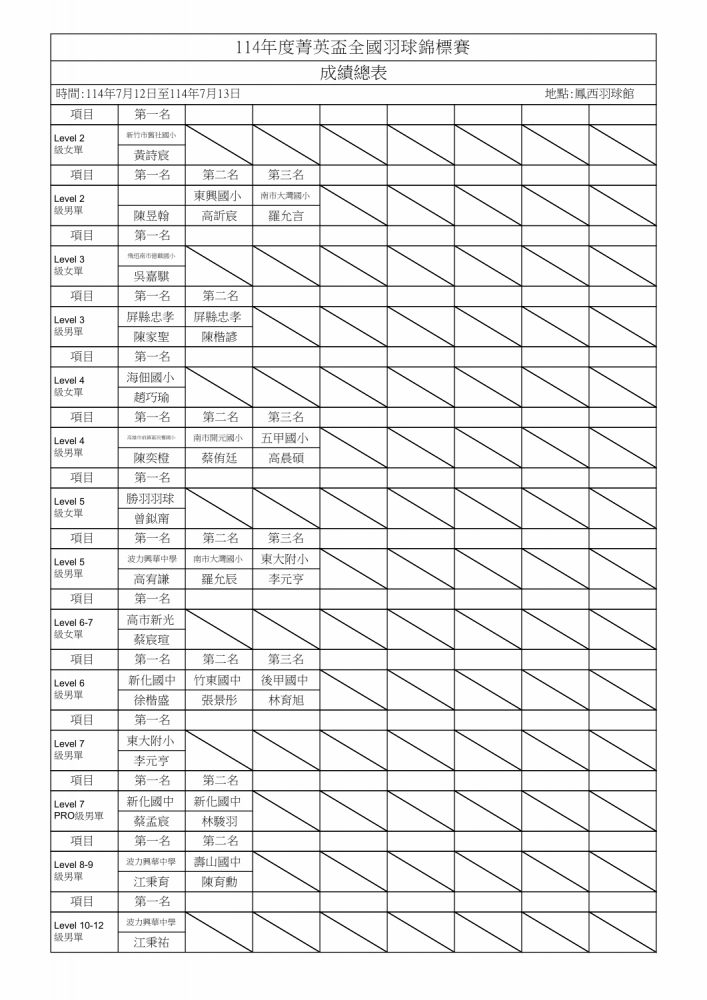 114年度菁英盃全國羽球錦標賽 比賽成績
