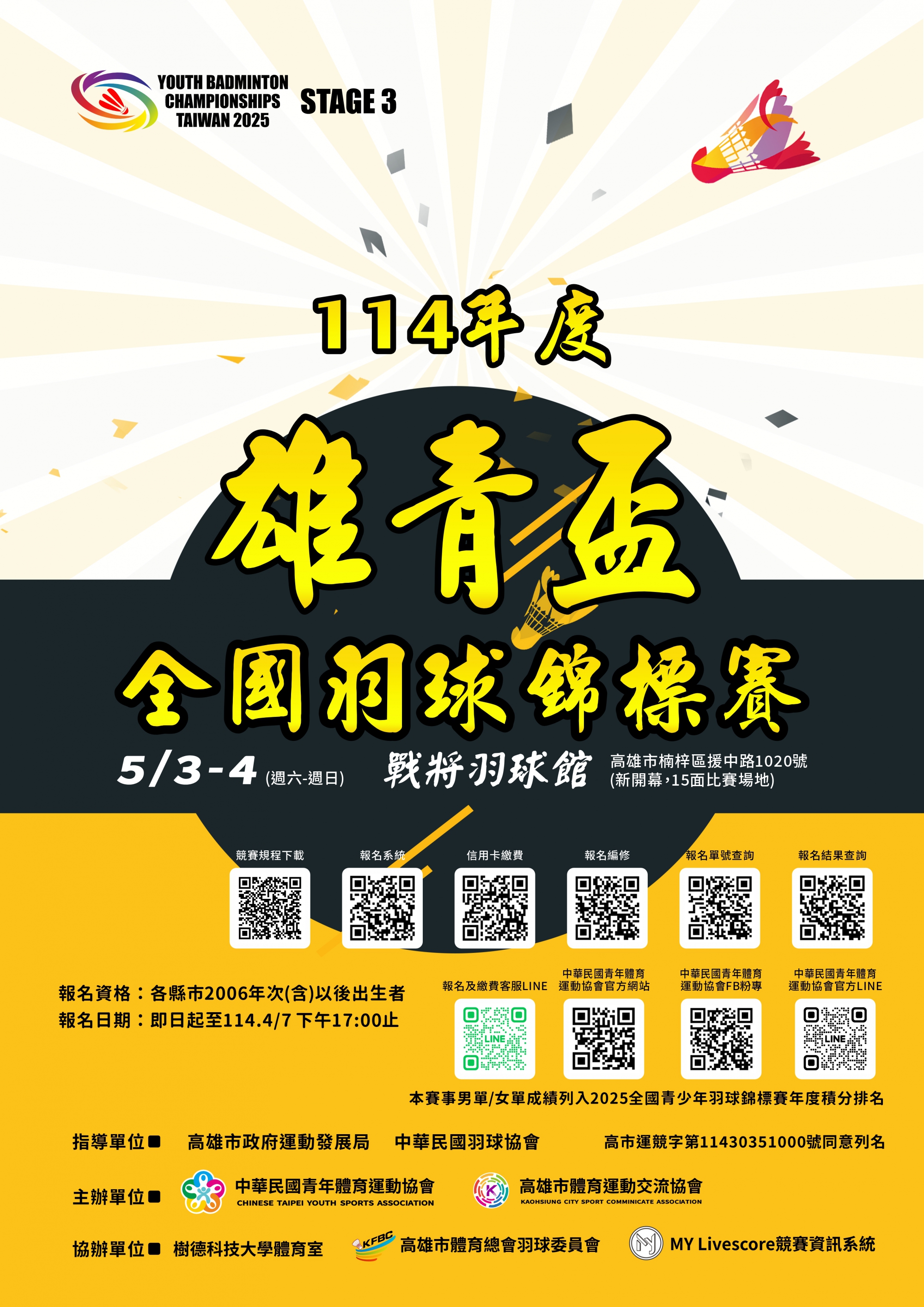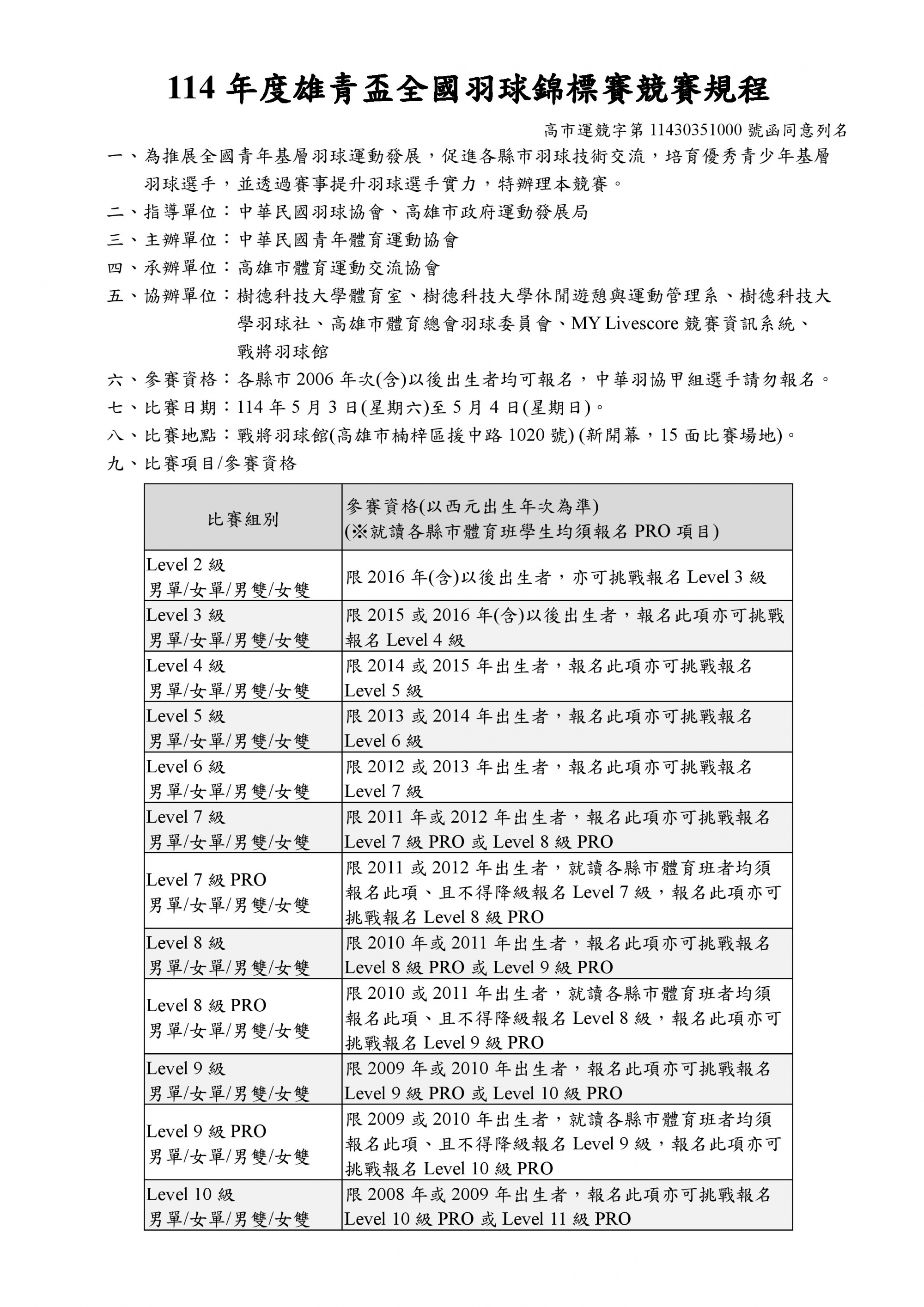 114年度雄青盃全國羽球錦標賽開始報名嘍