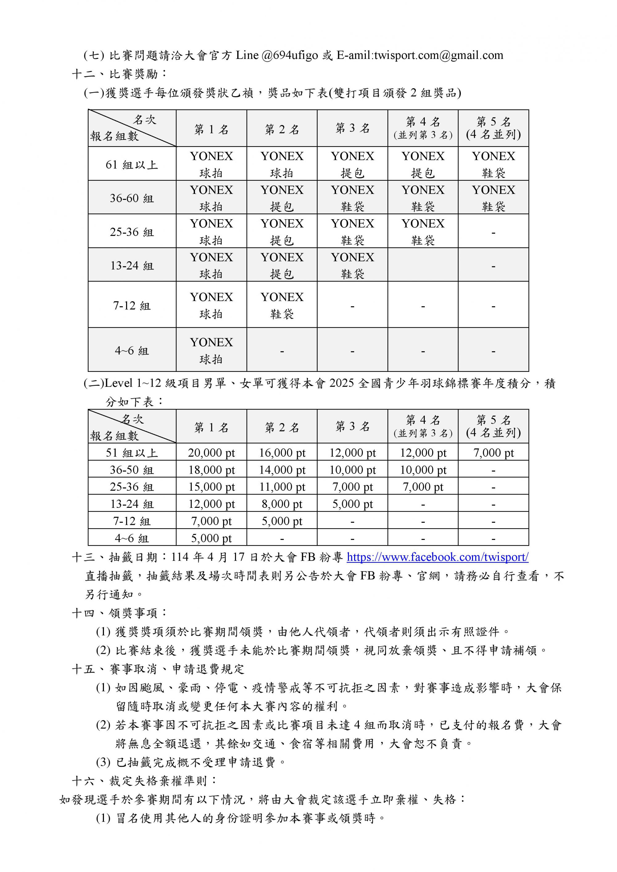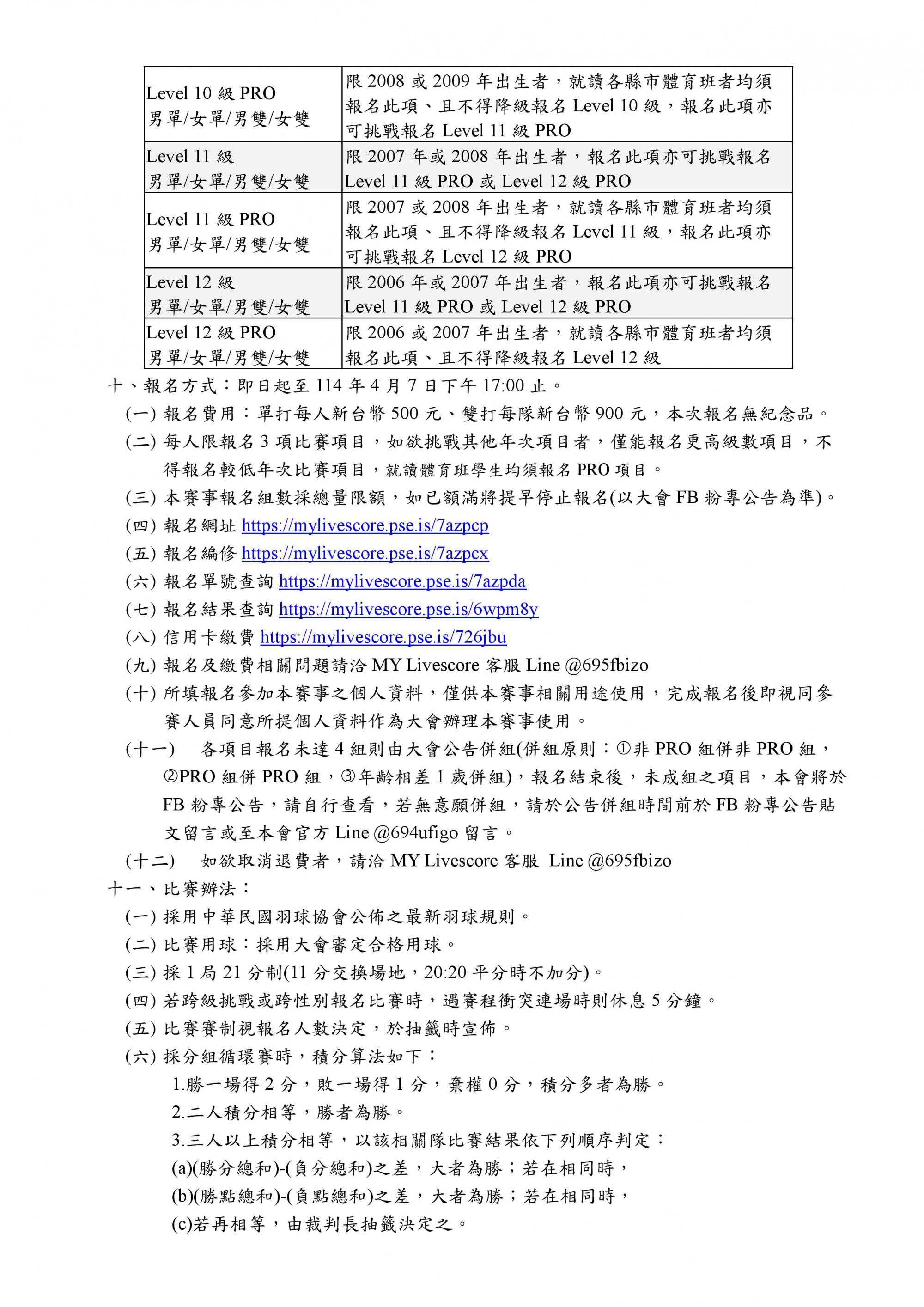 (二)本賽事報名組數採總量限額,如已額滿將提早停止報名(以大會FB粉專公告為準)