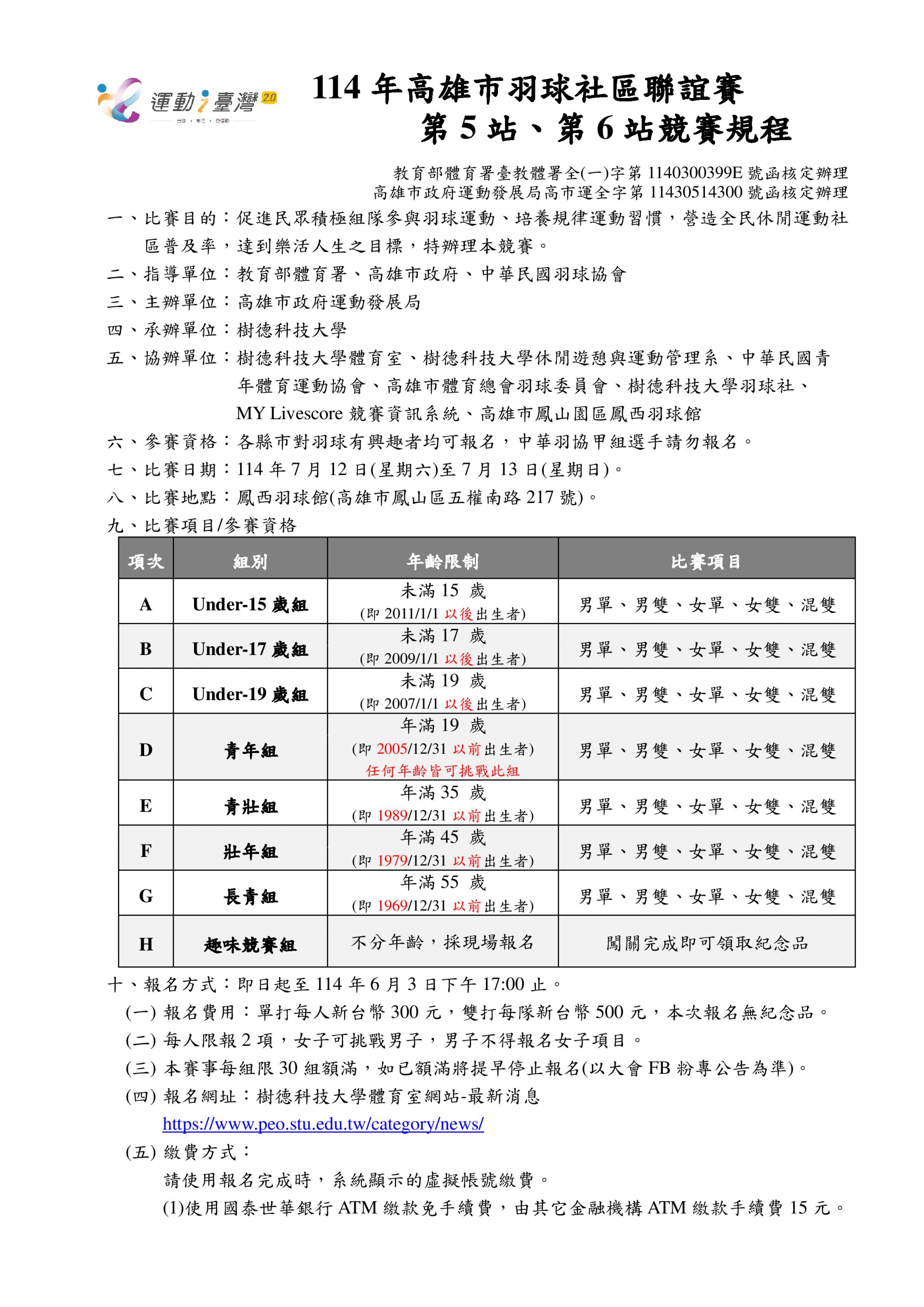 運動i臺灣2.0-114年高雄市羽球社區聯誼賽-第5、6站開始報名嘍