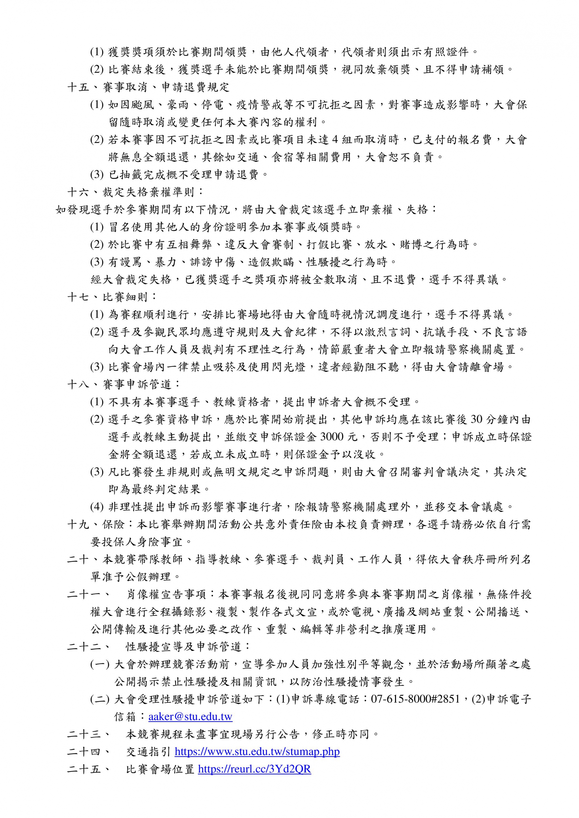 (7)截止前未繳費視同未完成報名,則不納入抽籤作業、並不受理出賽。