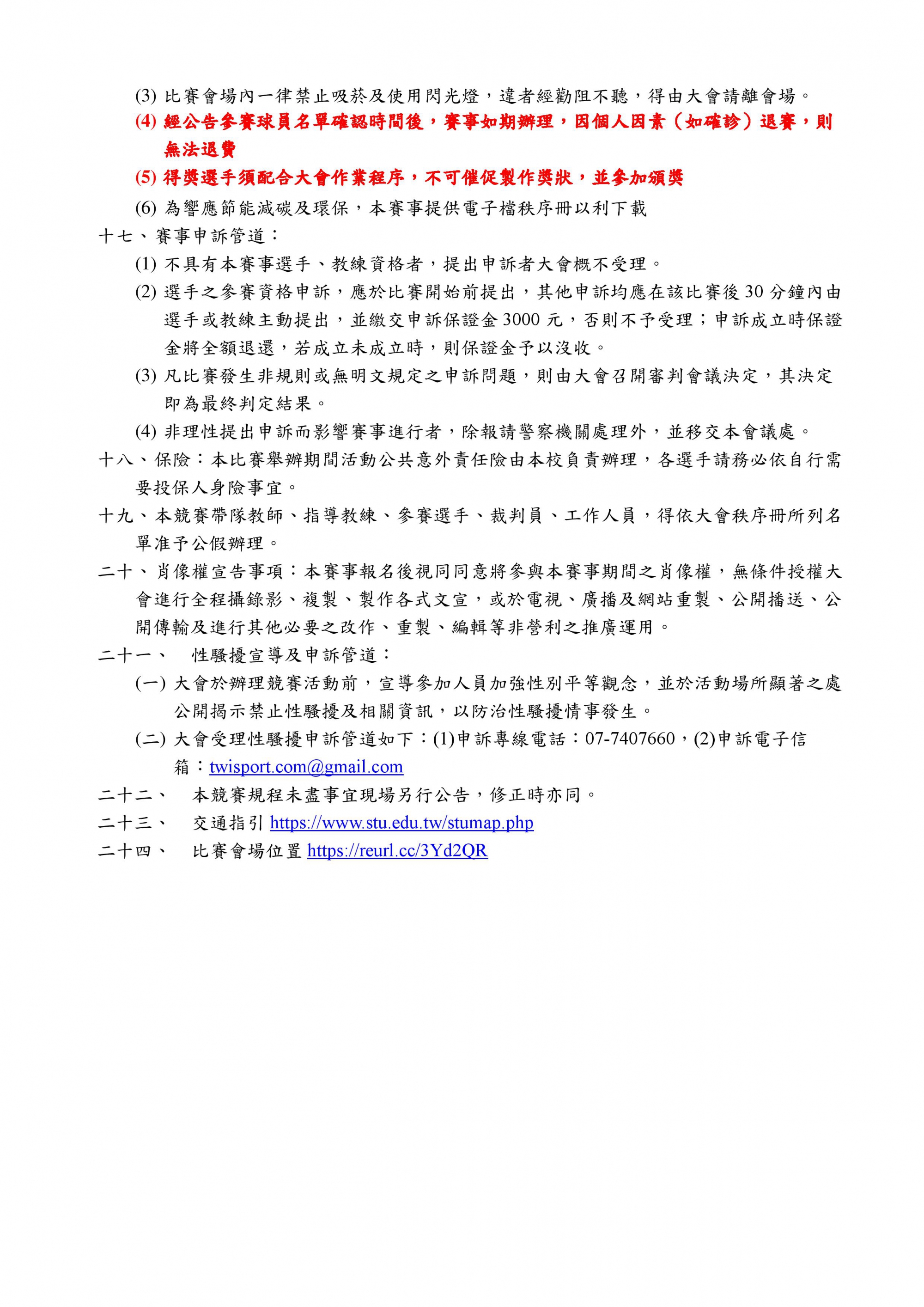 比賽地點:樹德科技大學體育舘 高雄市燕巢區橫山路59號